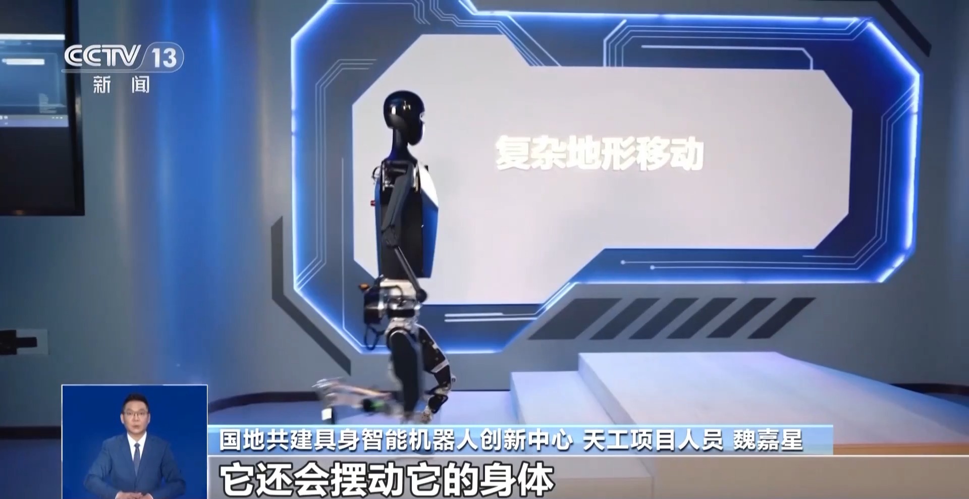 人形机器人“天工”,是由工信部和北京市共同支持的具身智能机器人创新中心设计研发的。