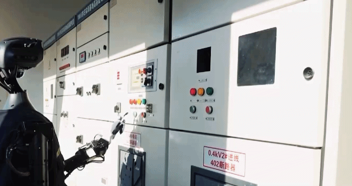 只见“天工”走进配电室,手持超声波低电波局部放电检测仪,对多台电柜进行多点位局部放电检测,高效完成巡检任务。同时还能顺利完成合闸、分闸等操作任务。