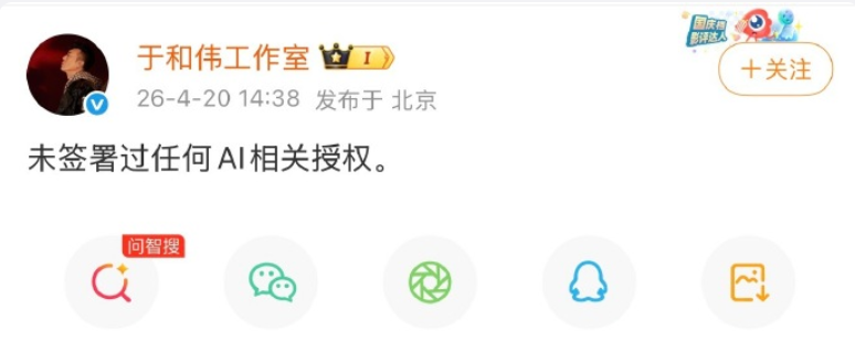 然而,张若昀、于和伟、王楚然、李一桐等多位艺人迅速发布声明,明确表示“从未签署任何AI相关授权”。与此同时,爱奇艺CEO龚宇表示,“100%真人实拍可能成为非物质文化遗产”的言论引发全网哗然。