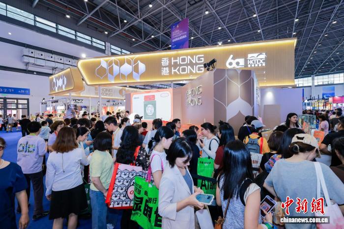 4月13日,第六届中国国际消费品博览会上香港时尚馆展位前人流络绎不绝。冯程 摄