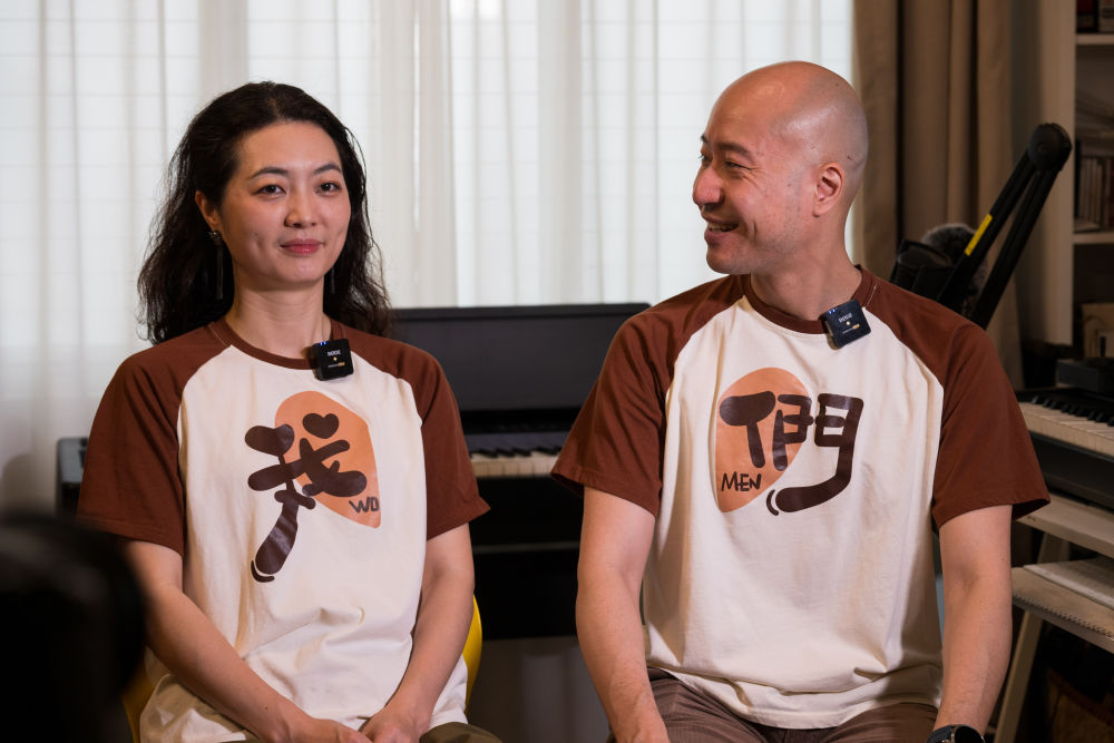 3月28日,童光荣(右)和莫双双在位于越南首都河内的家中接受采访。