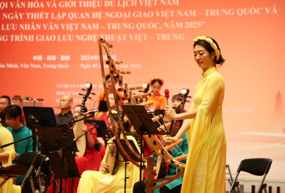 2024年11月5日,“新活力”民族乐团在云南昆明举行的共迎中国-越南建交75周年暨“中越人文交流年”中越文化及旅游交流活动上演出。