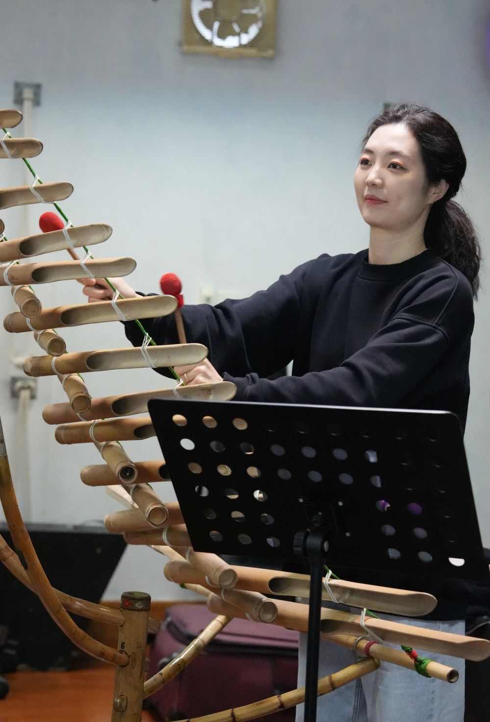 2024年11月5日,莫双双在云南昆明举行的共迎中国-越南建交75周年暨“中越人文交流年”中越文化及旅游交流活动上演奏竹排琴。