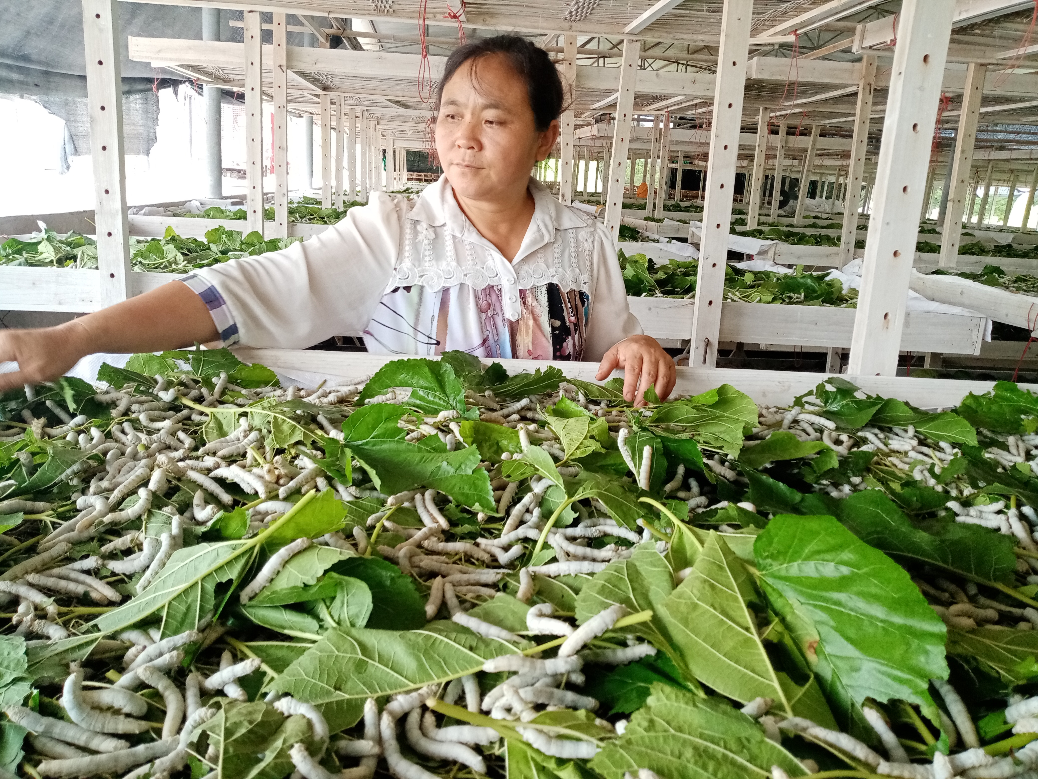春、夏、秋三季,桑树桑叶葱绿。冬季桑树桑叶凋零,蚕农利用冬季修剪枝条。以往,修剪的枝条直接废弃,2020年废弃枝条在双河村有了新的用处:粉碎桑枝制作菌包,建立村集体经济桑枝菌场,种植白玉木耳、猴头菇、香菇、黑木耳等优质食用菌种。到2020年底,桑枝菌产业让双河村集体经济增收50余万元。