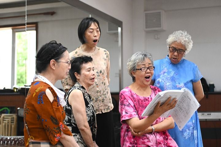 宁夏银川市金凤区长城花园社区居民在活动室排练节目(2024年6月20日摄)。新华社记者 毛竹 摄