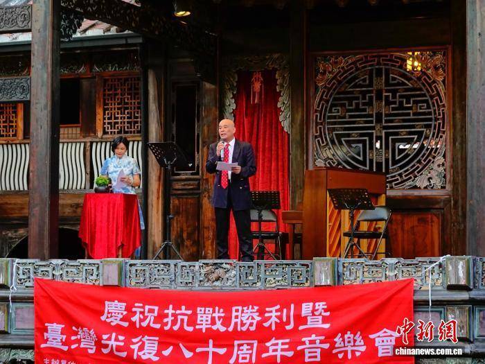 在距离台北不到两百公里的台中,《台湾光复纪念歌》等旋律飘扬在百年宅园“雾峰林家宫保第”的上空。台湾抗日志士亲属协进会等团体在此举办音乐会,重温抗争岁月。宅园内,“三代民族英雄 百年台湾世家”的题字格外醒目。