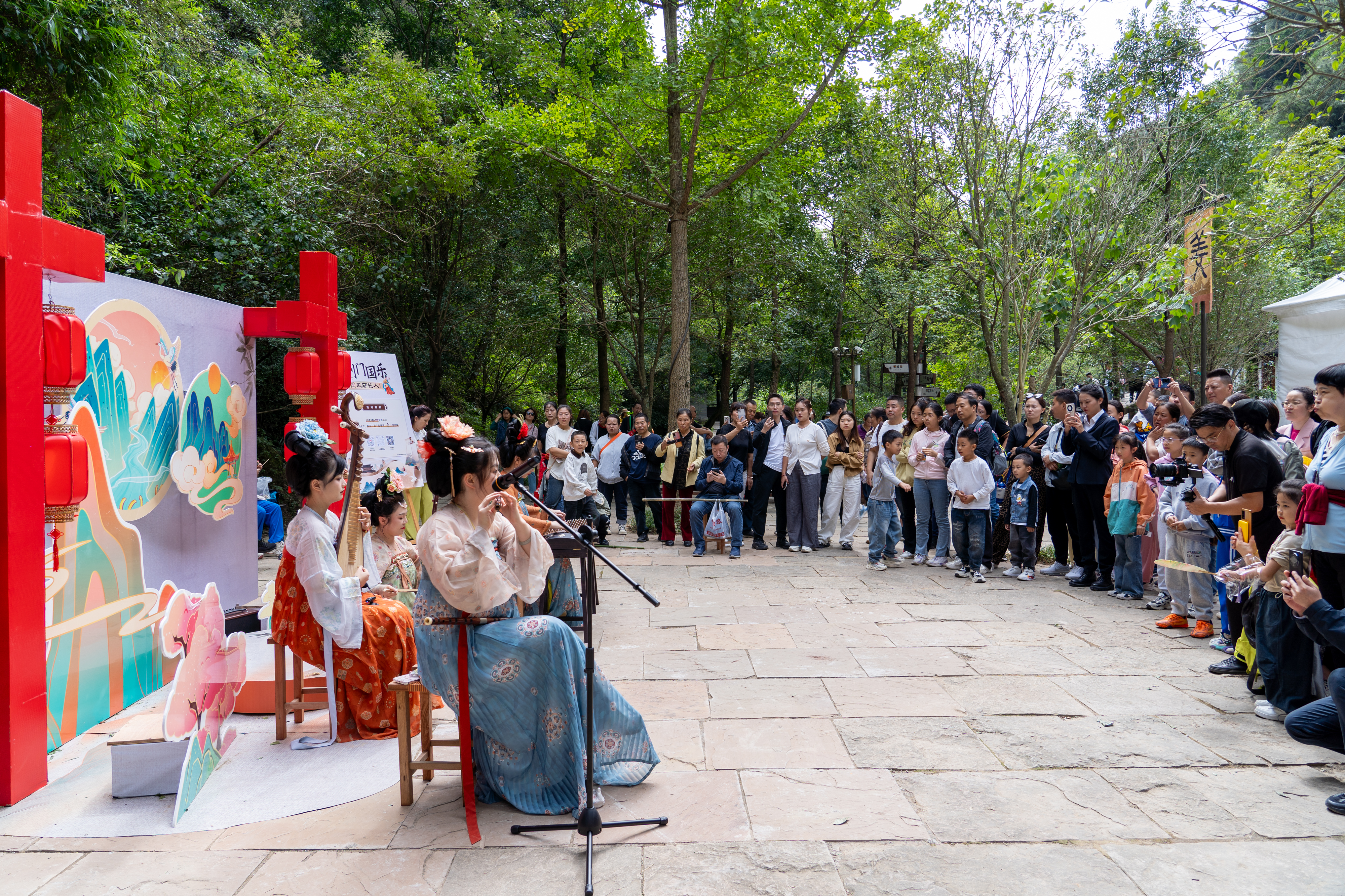 游客驻足观看文艺演出。杨文波供图