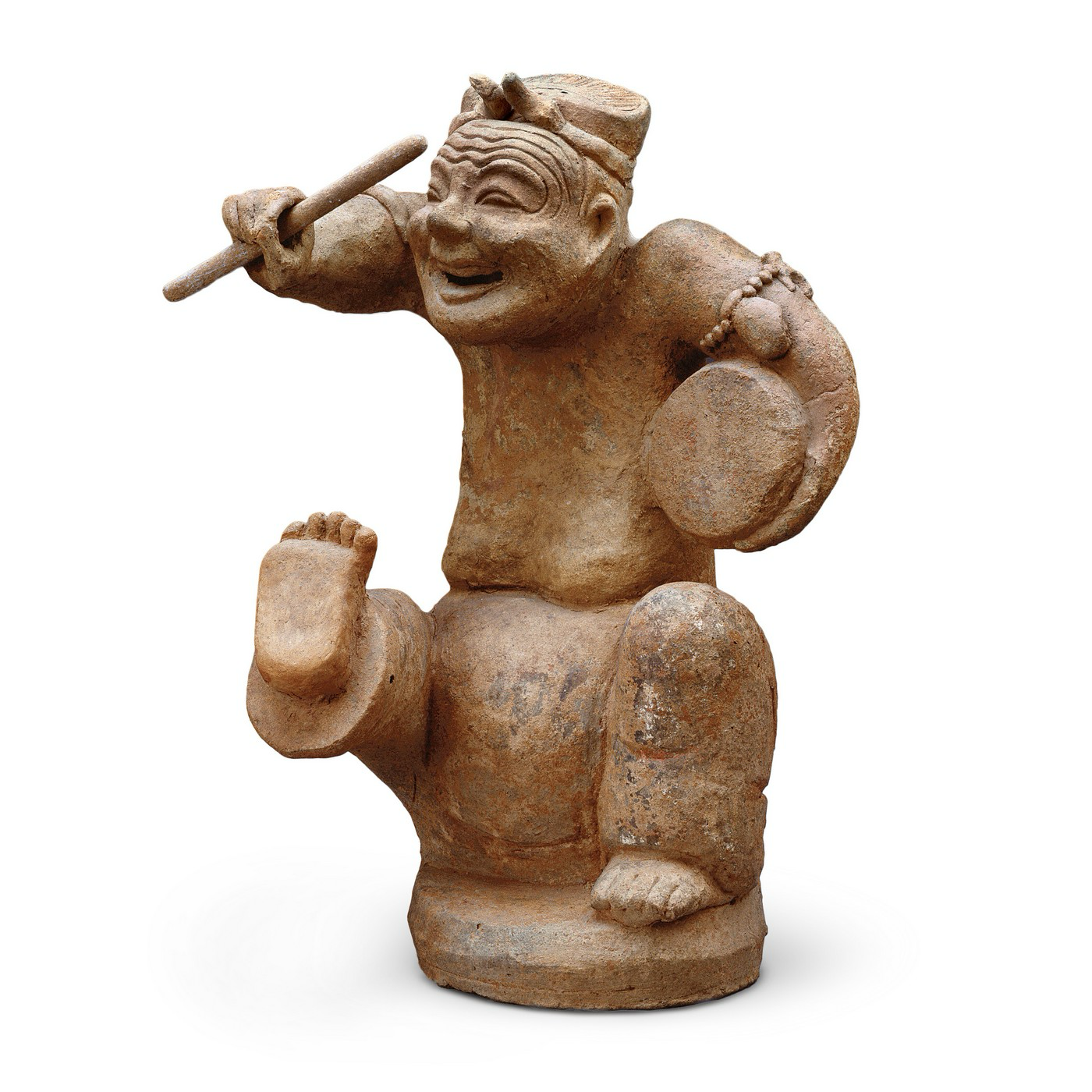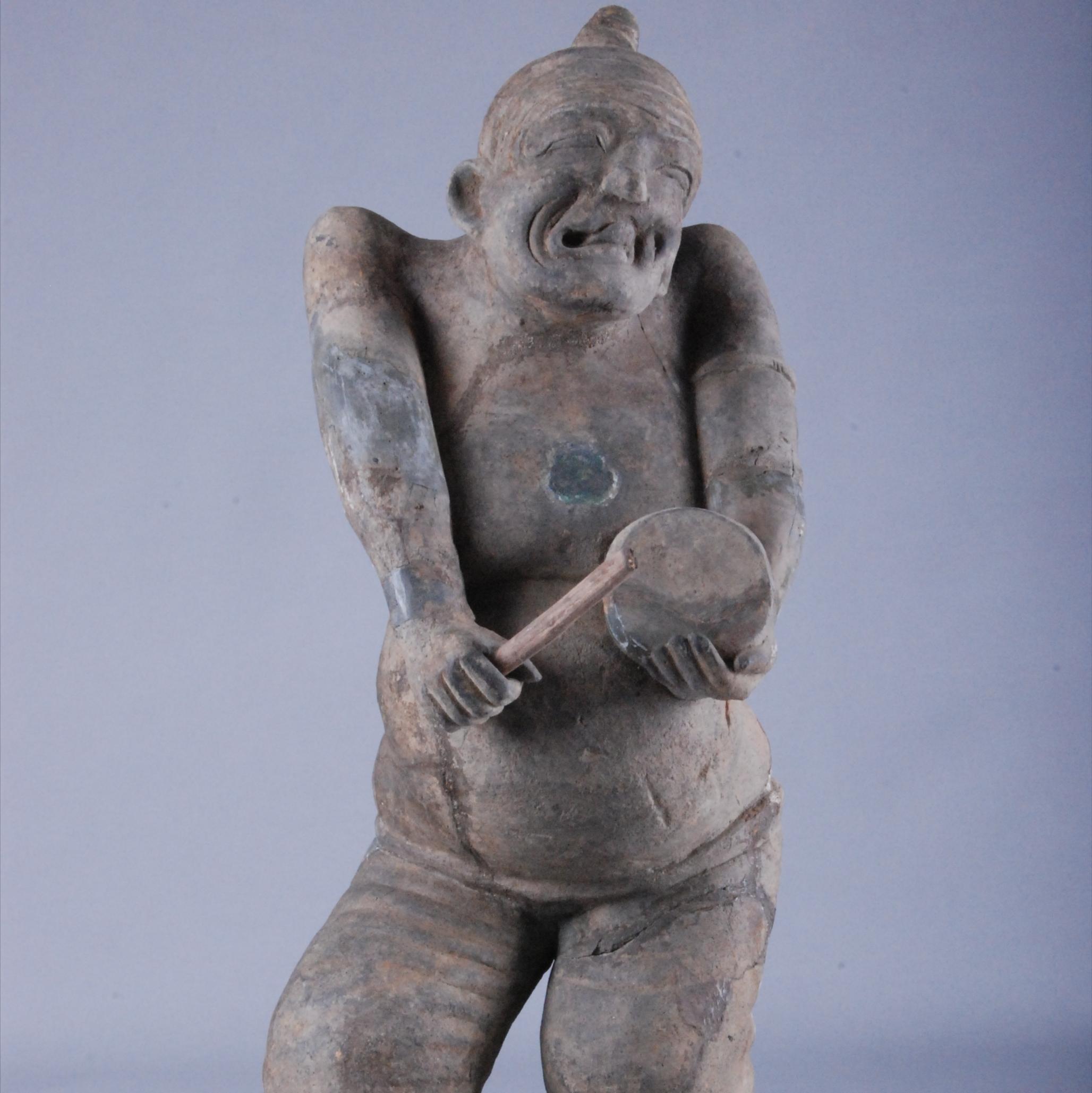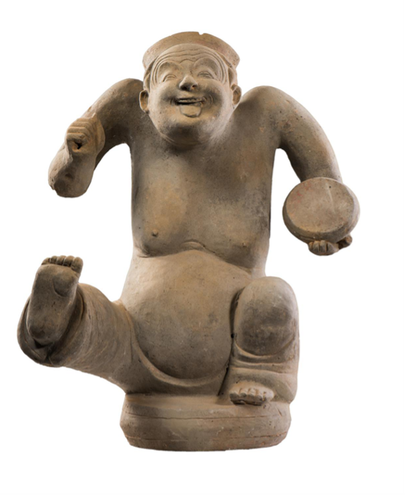 左手执鼓 右手握拳作拿鼓槌击鼓的样子