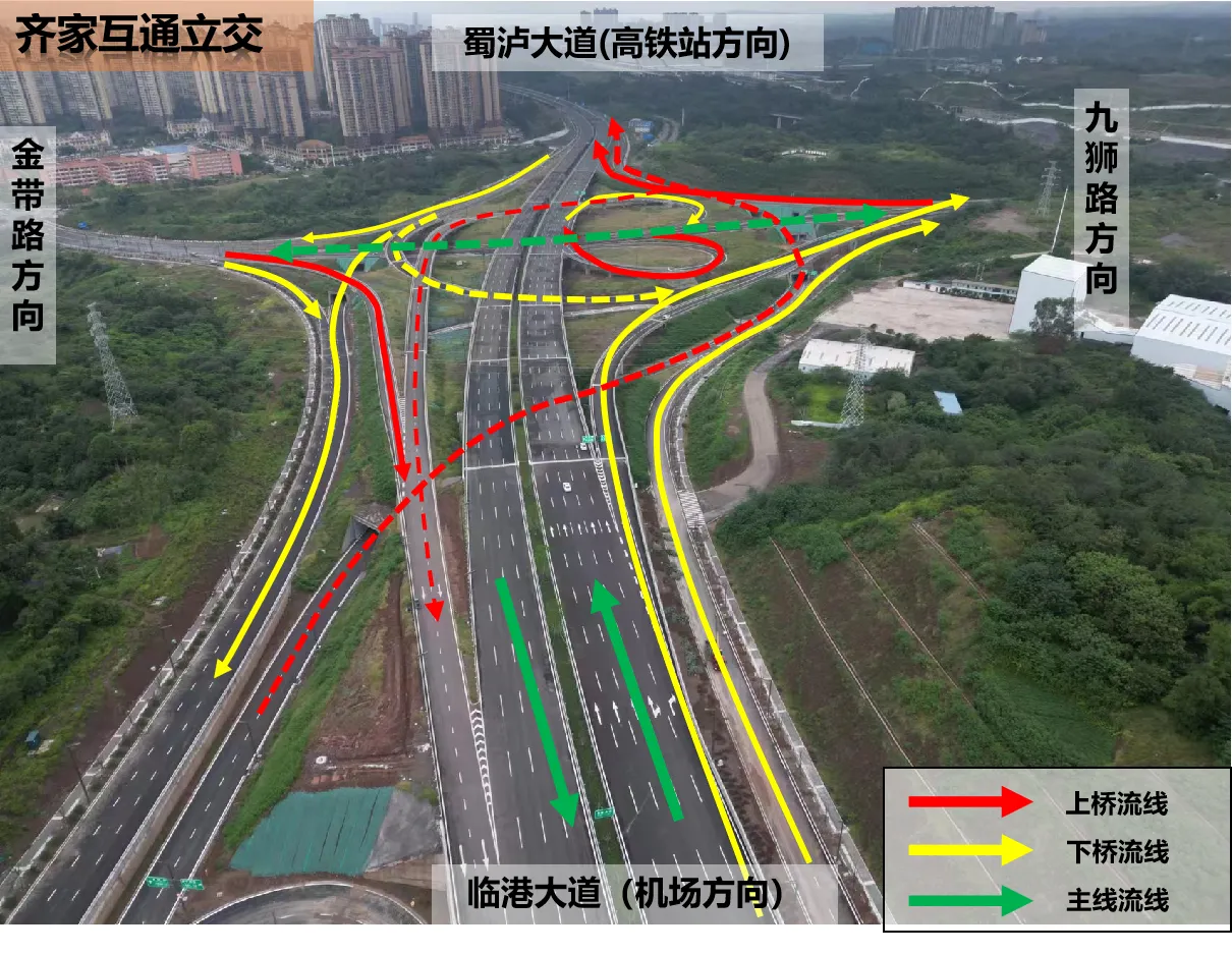齐家互通立交流线图。图据酒城交警