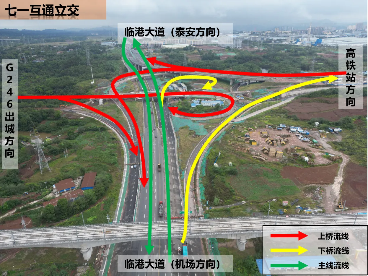 七一互通立交流线图。图据酒城交警