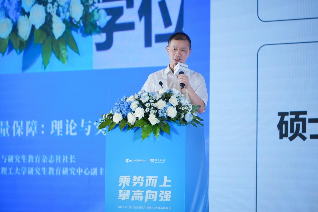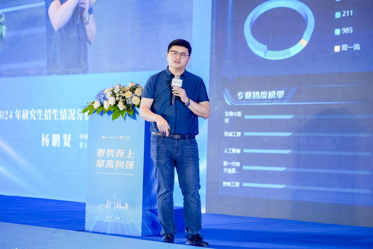 中国教育在线副总编辑、掌上考研总编辑杨鹏贤做了《2024年研究生招生情况分析及研招服务的相关探索》主题报告。他从2024年研究生招生、报名及调剂、录取情况出发,分析了考研学生的实际需求,分享了研究生招生精准宣传思路和案例,并就掌上考研在数智服务方面的应用进行了介绍,为提高高校招生效率和质量提供了参考。