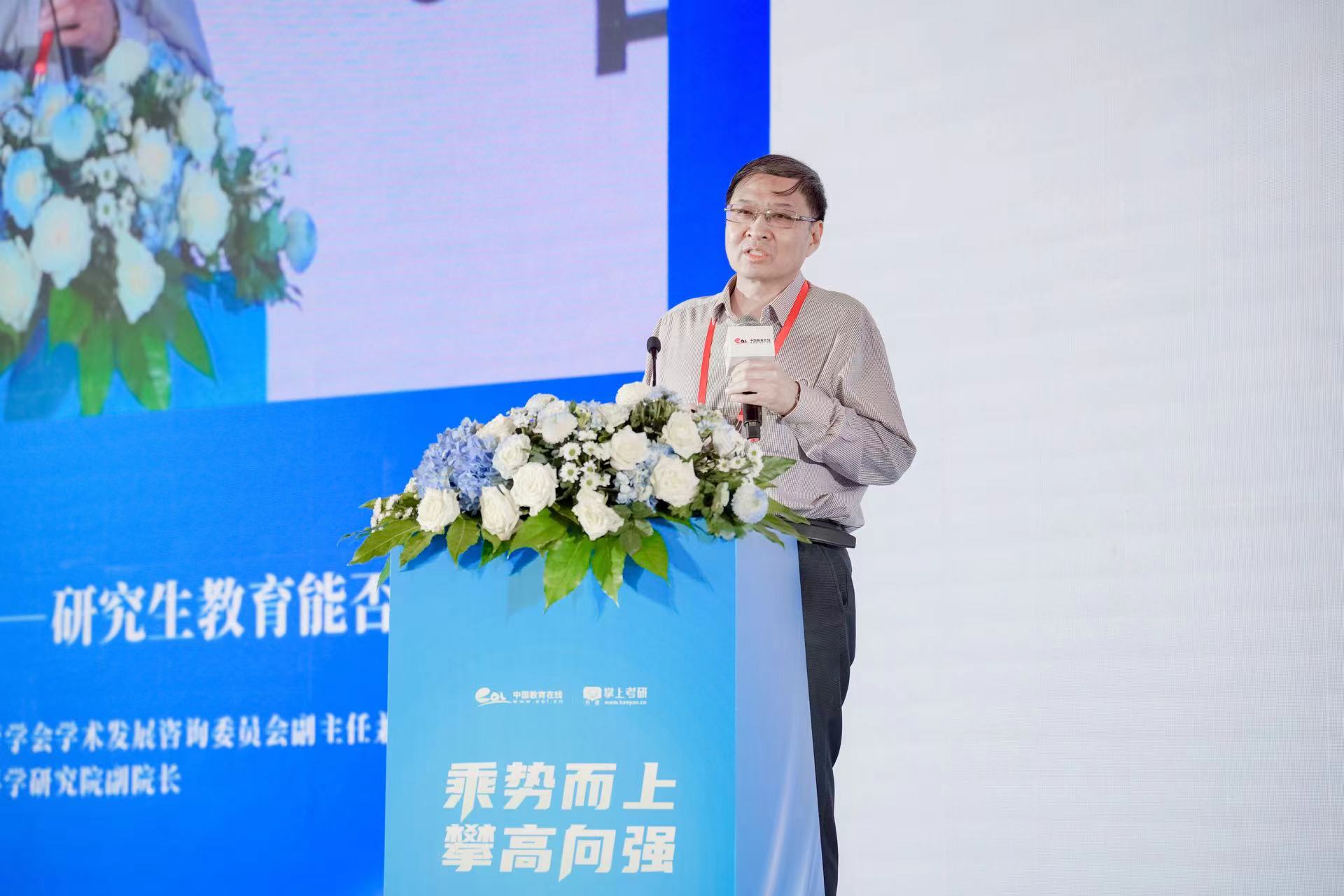 国家教育考试指导委员会专家组成员、中国教育在线总编辑陈志文以《教育强国建设与研究生教育的挑战》为主题,分享了他对研究生教育未来发展的思考。他表示,建设教育强国,高等教育是龙头,研究生教育是教育、科技、人才三位一体的核心节点,就是龙头中的龙头,举足轻重。