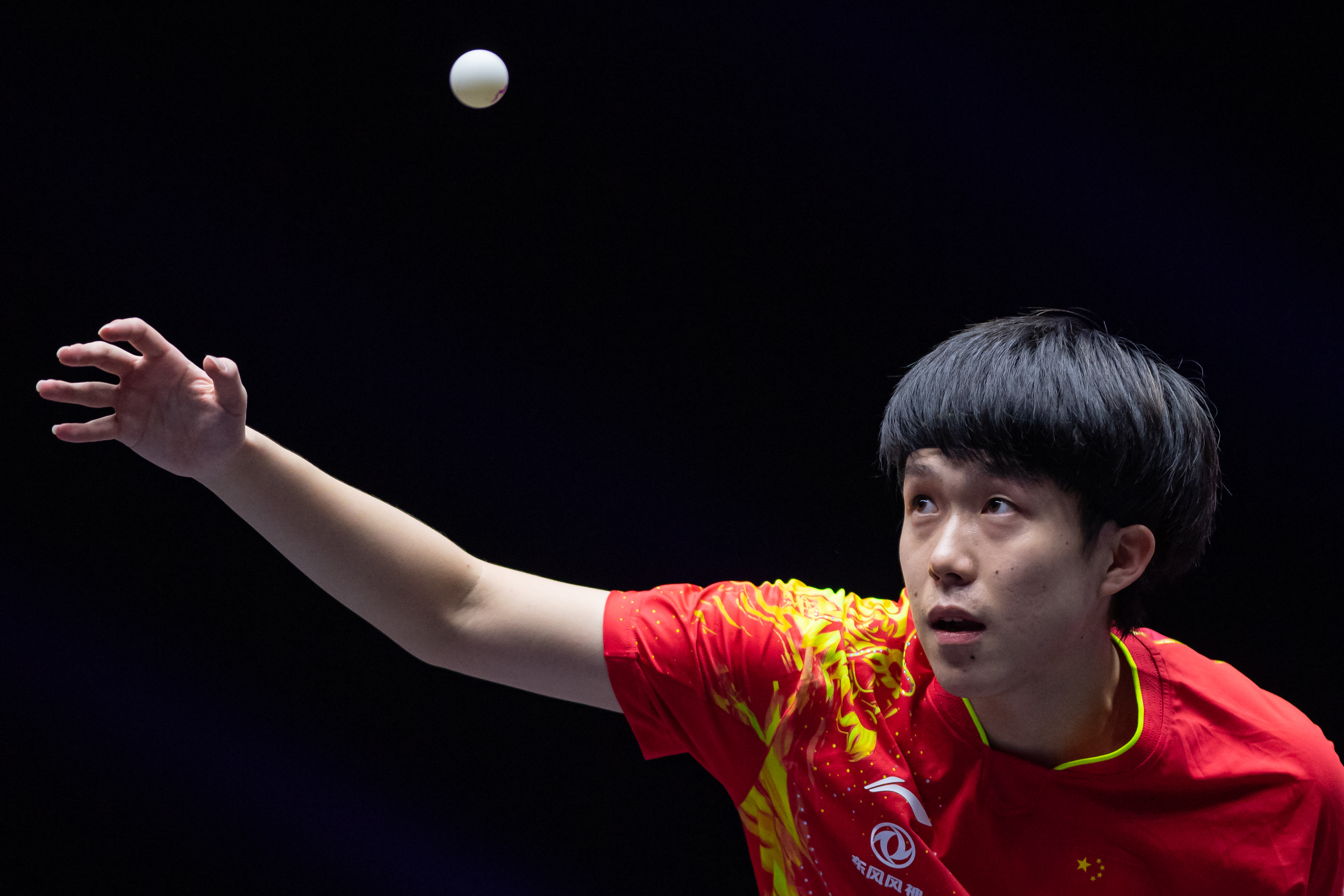 10月22日,王楚钦在比赛中发球。新华社记者 张金加 摄