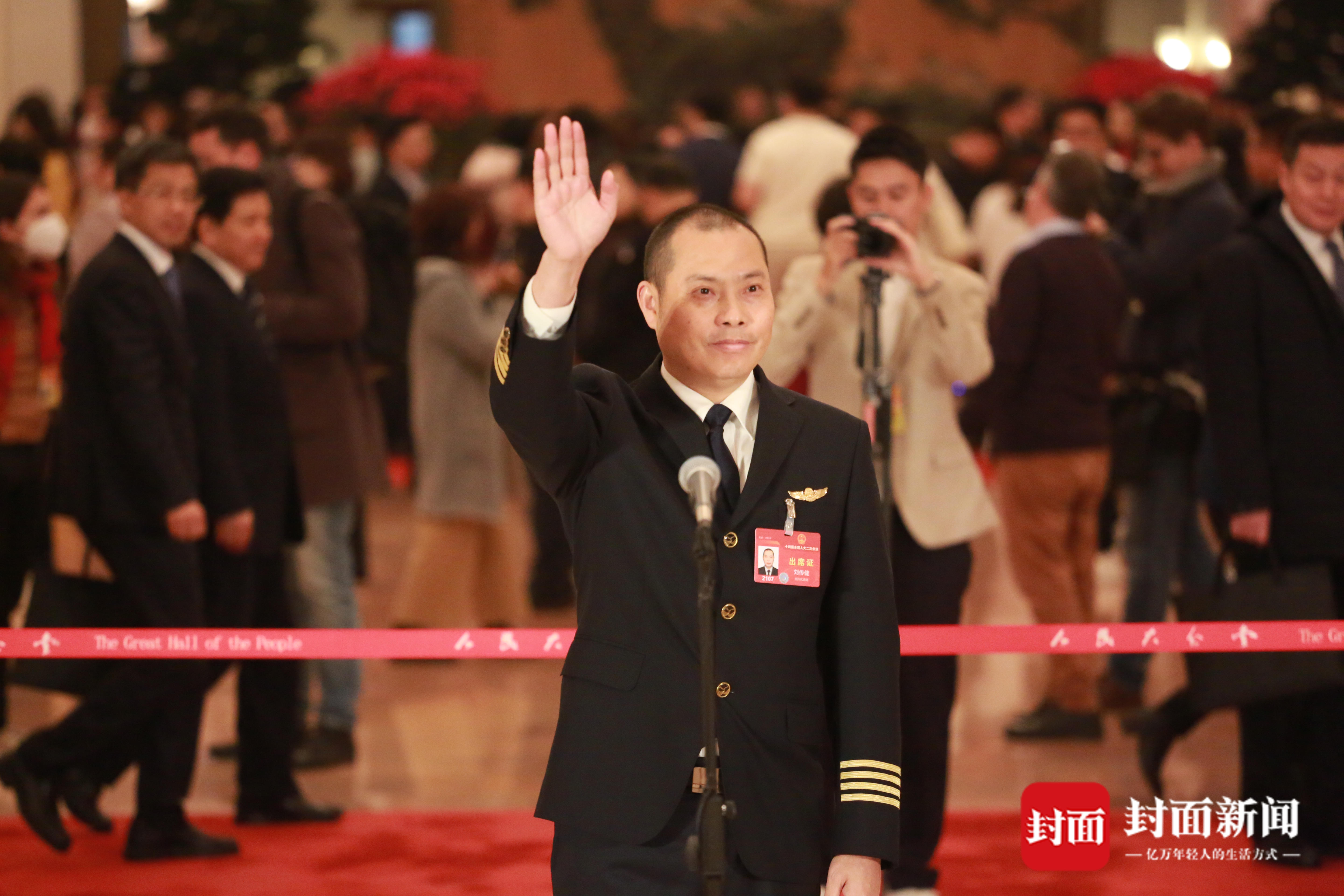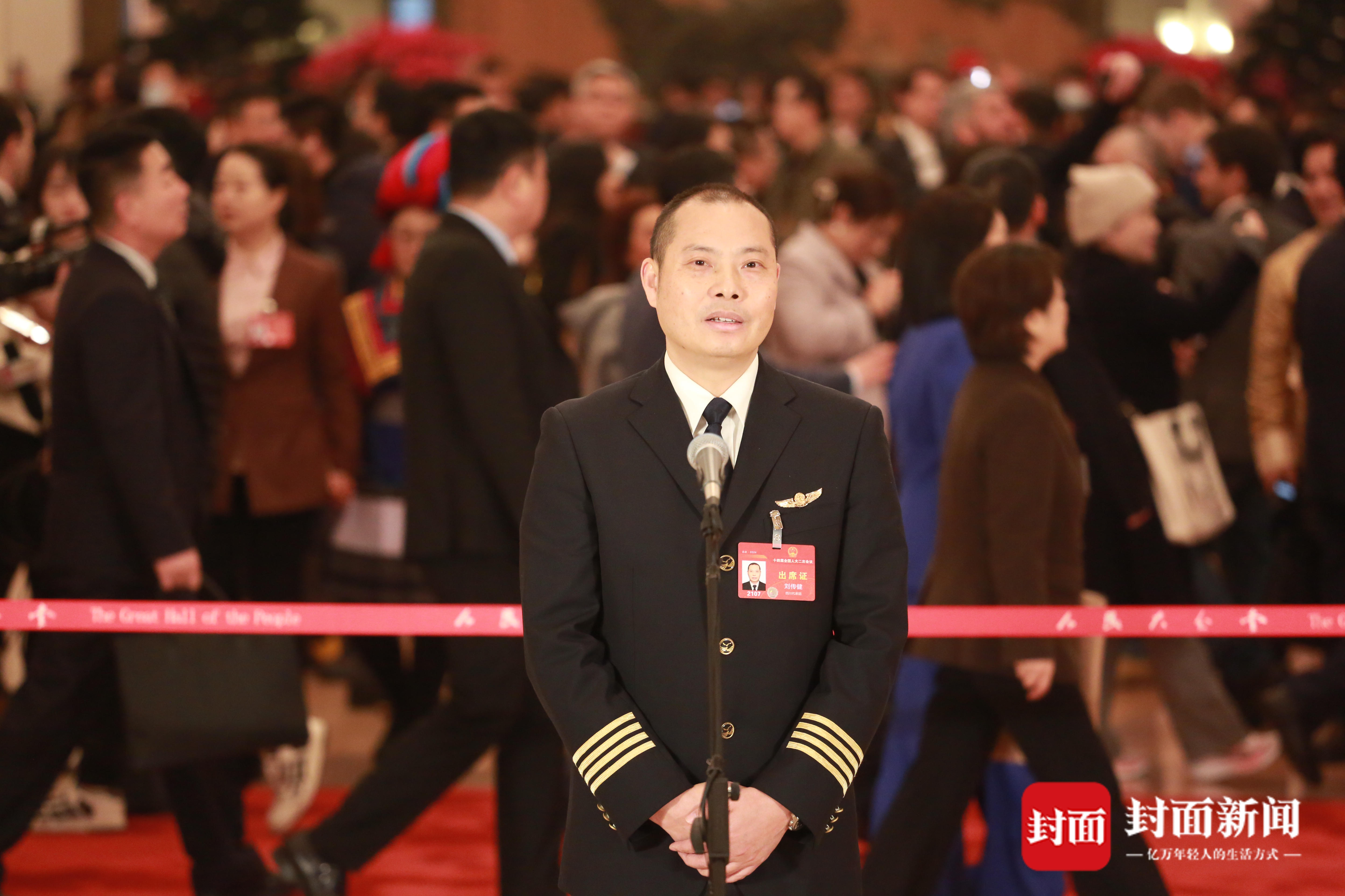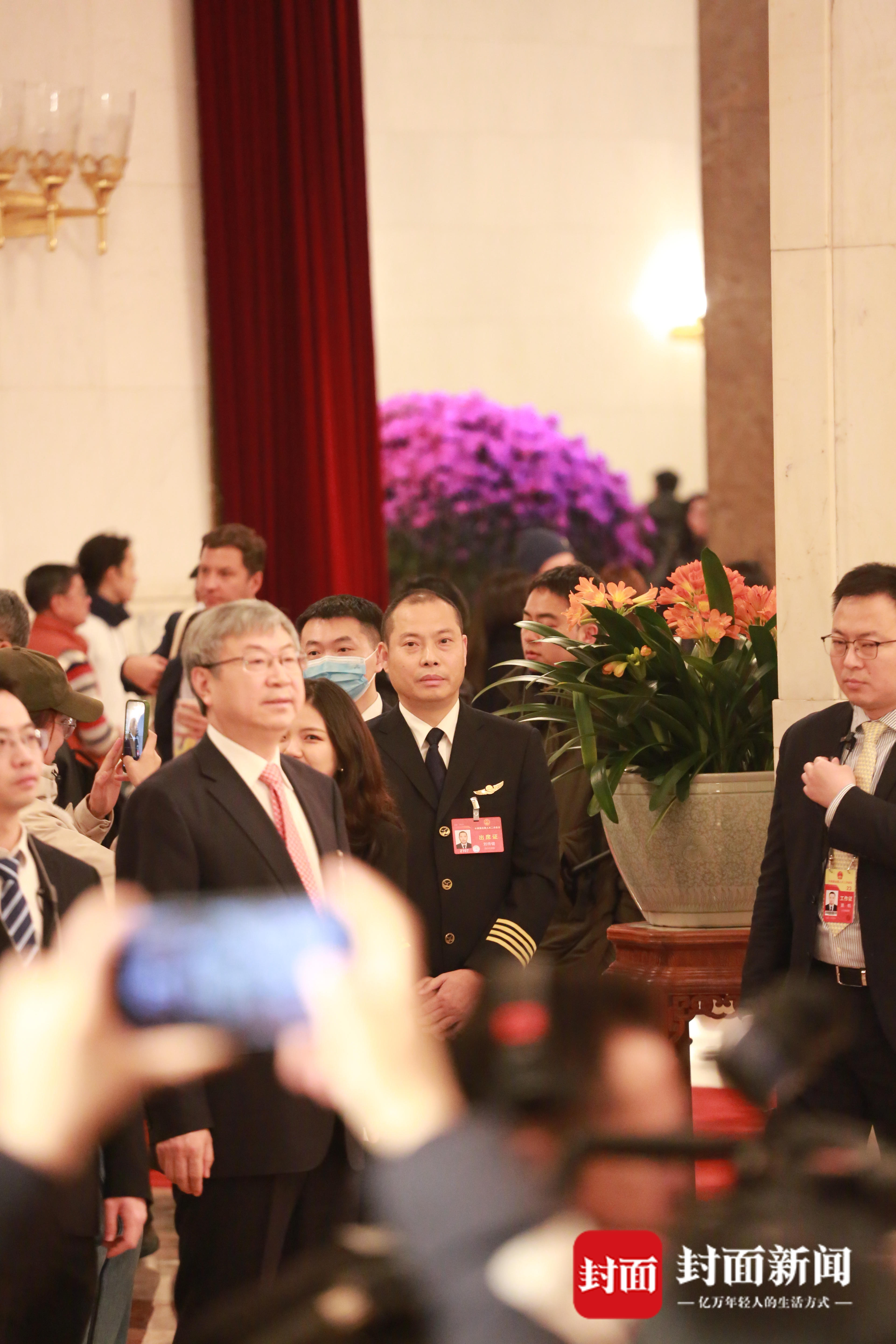 3月5日上午8点,十四届全国人大二次会议首场“代表通道”集体采访活动在人民大会堂中央大厅北侧举行。全国人大代表、中国民用航空飞行学院总飞行师刘传健亮相代表通道。