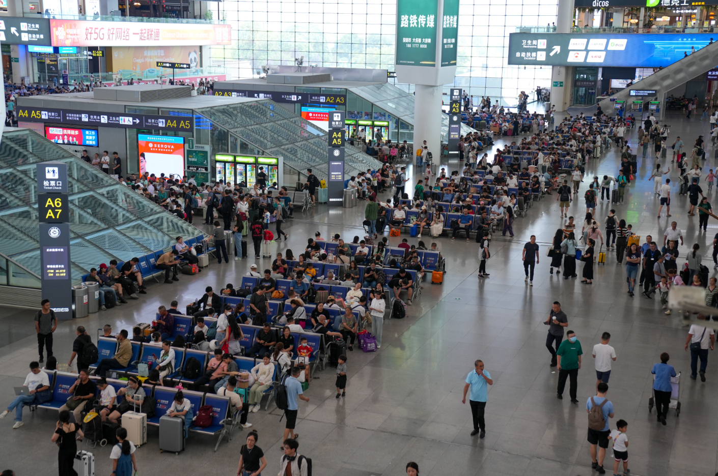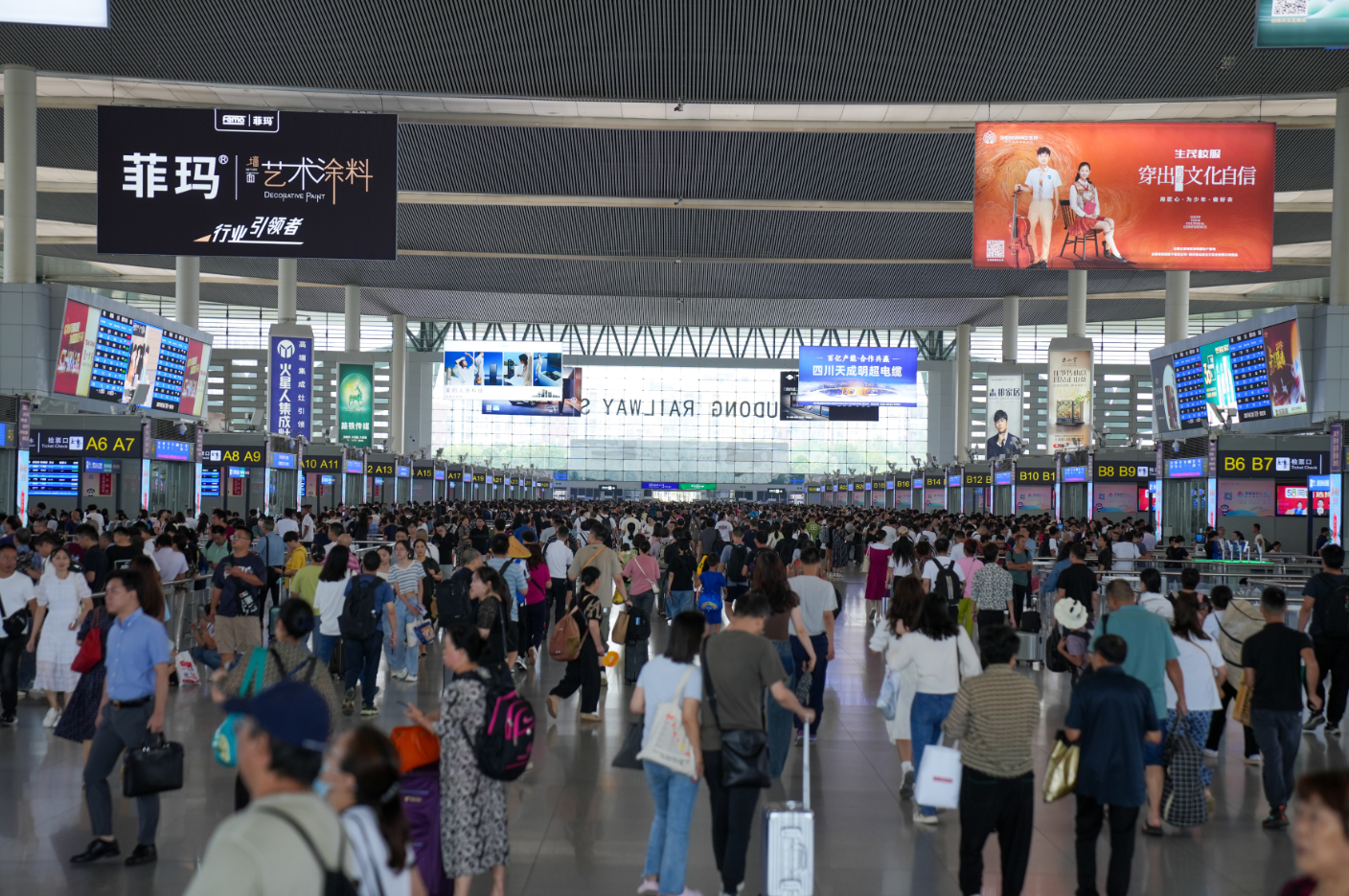 客流最高峰发生在8月12日,当日成都车站管内发送旅客41.0万人次,其中成都东站发送旅客27.1万人次,创该站暑运单日旅客发送量新高。