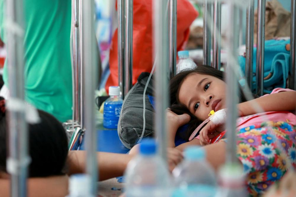 2019年8月15日,在菲律宾内湖省,一名患登革热的儿童在医院接受治疗。图据新华社