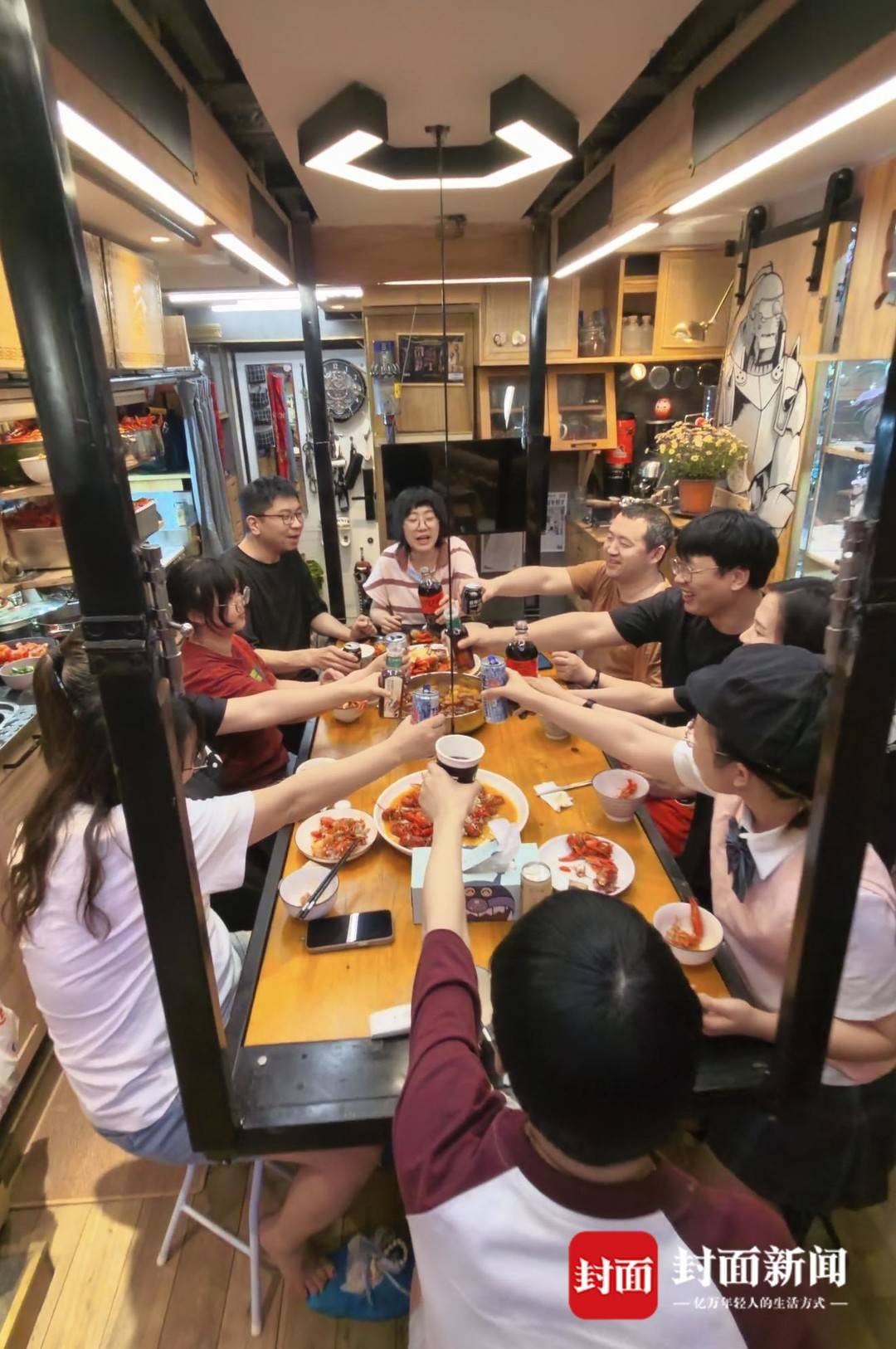 这套小房子里,最多能容纳多少人呢?“豆丁92”告诉记者,最多时容纳过16人的聚会,其中14人同时围坐吃小龙虾。一边吃饭、一边唱歌、还能随时切换电影或游戏。