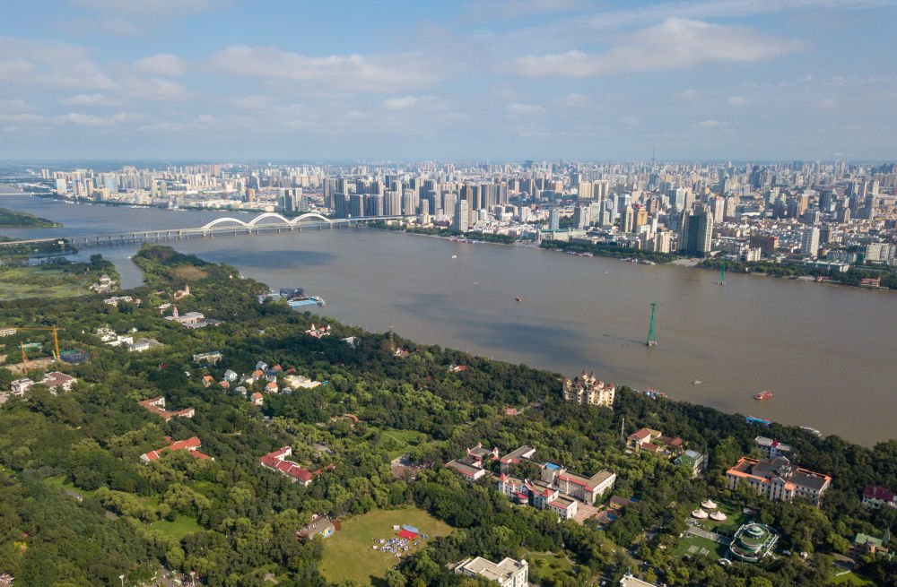 ↑8月20日拍摄的松花江哈尔滨段和太阳岛局部(无人机照片)。新华社记者 王建威 摄