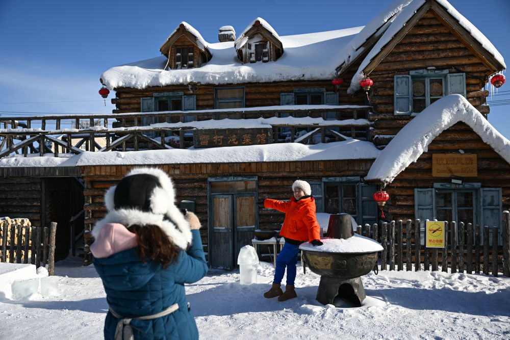 ↑游客在内蒙古兴安盟阿尔山市游玩(2023年12月14日摄)。新华社记者 贝赫 摄