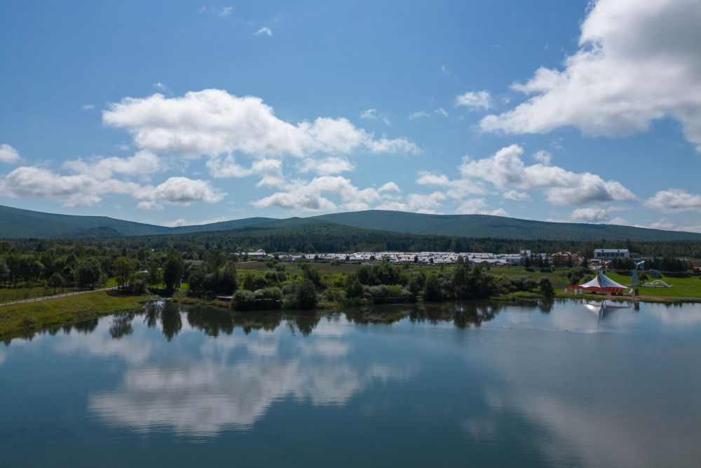 ↑这是8月27日拍摄的吉林市万科松花湖度假区(无人机照片)。新华社记者 颜麟蕴 摄
