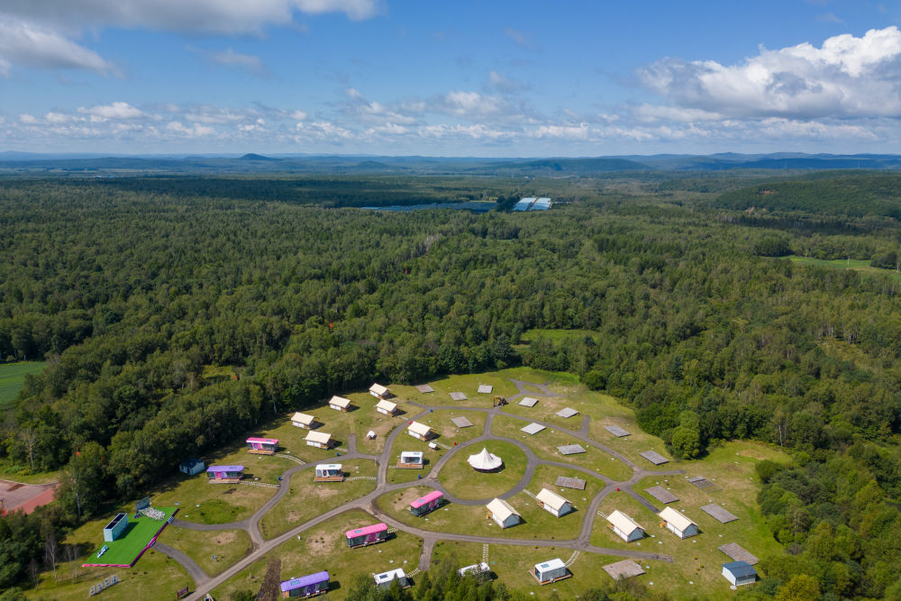 ↑这是8月27日拍摄的黑龙江伊春森工集团上甘岭林业局公司溪水林场的溪水野奢帐篷度假酒店项目(无人机照片)。新华社记者 张涛 摄