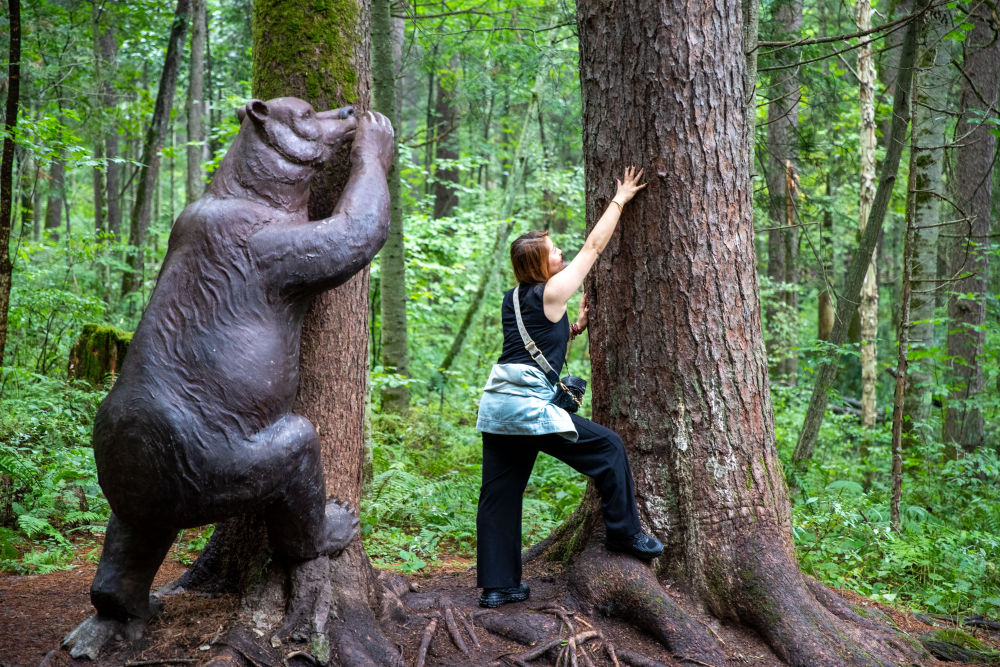 ↑8月27日,一名游客在黑龙江伊春森工集团上甘岭林业局公司溪水林场拍照。新华社记者 张涛 摄