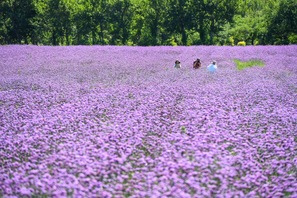 ↑8月26日,游客在吉林省松原市查干湖花海拍照留念。新华社记者 张楠 摄