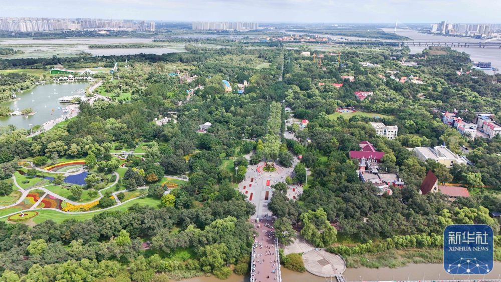 ↑这是哈尔滨太阳岛国家湿地公园局部景色(8月20日摄,无人机照片)。新华社记者 王松 摄