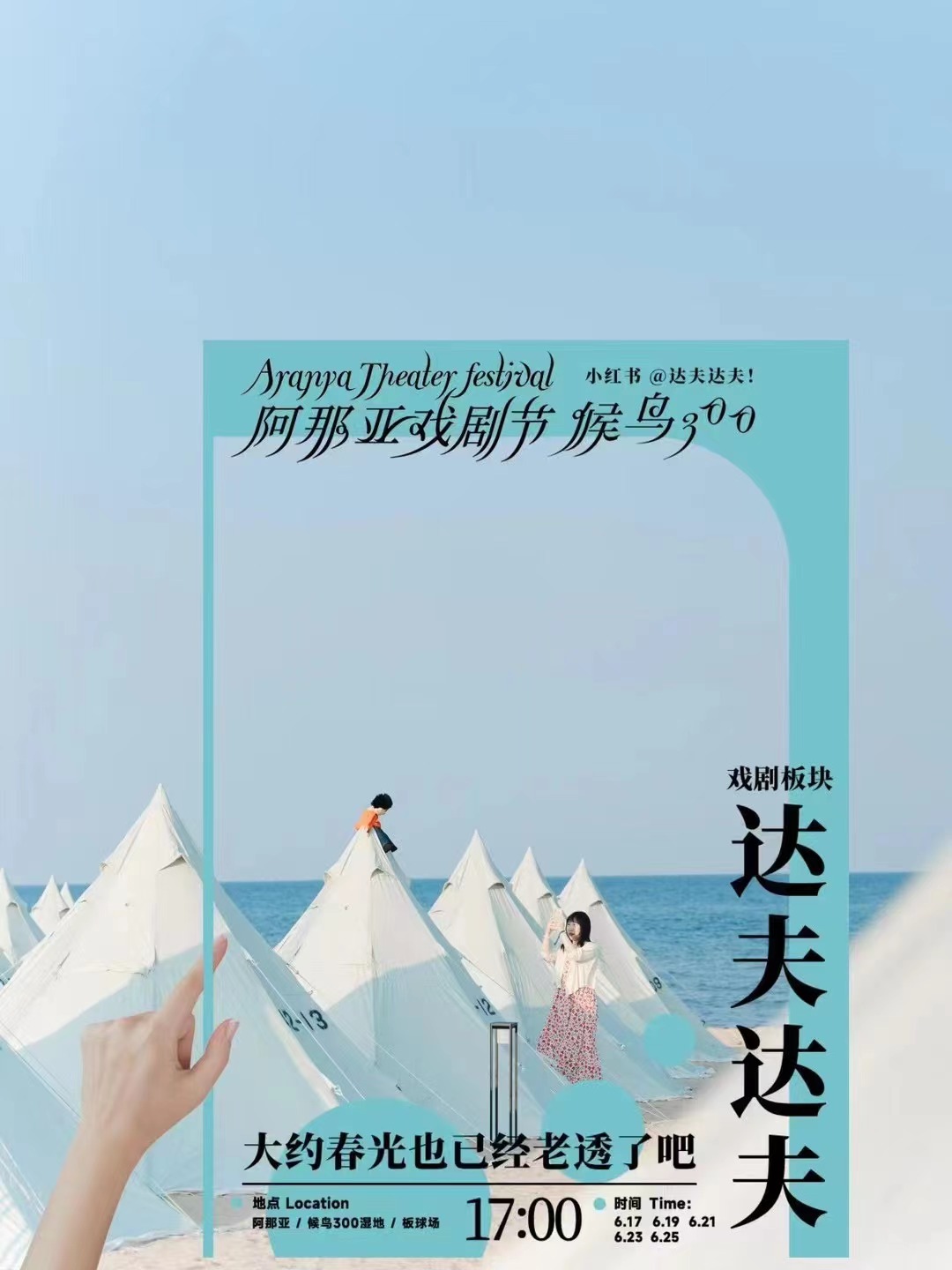 在海边,在礼堂,在书店,在森林,戏剧的灵感和力量随时随地展开,不同剧目跳脱出传统的剧场空间,加深了人与人之间的情感链接。当艺术真正融入生活,来自不同剧团、有着不同表演风格的创作者们聚到一起,又将碰撞出怎样的灵感火花?在阿那亚戏剧节候鸟300戏剧板块里,有39组戏剧、身体剧场类作品来到沙城,以崭新的方式呈现150场演出。在一个没有边界的舞台中,300位不同背景的创作者带着原创的、属于任意领域的作品来到海边,共同栖居、共同创作300小时,在创作中凝结起同呼吸的艺术命运共同体。