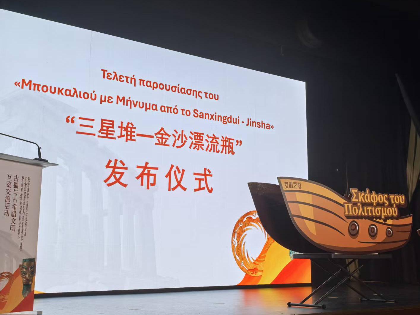 北京时间5月13日,《青铜之光——古蜀文明特展》在希腊雅典尼亚斯米尼市政博物馆揭幕,作为特展重要环节,“三星堆-金沙漂流瓶”希腊站发布仪式也在现场举行。在希腊文化部史前和古典文物司局长康斯坦蒂娜·贝尼西、中国古典文明研究院院长李新伟等嘉宾的共同见证下,“三星堆-金沙漂流瓶”全球联动第五站希腊站正式开启。