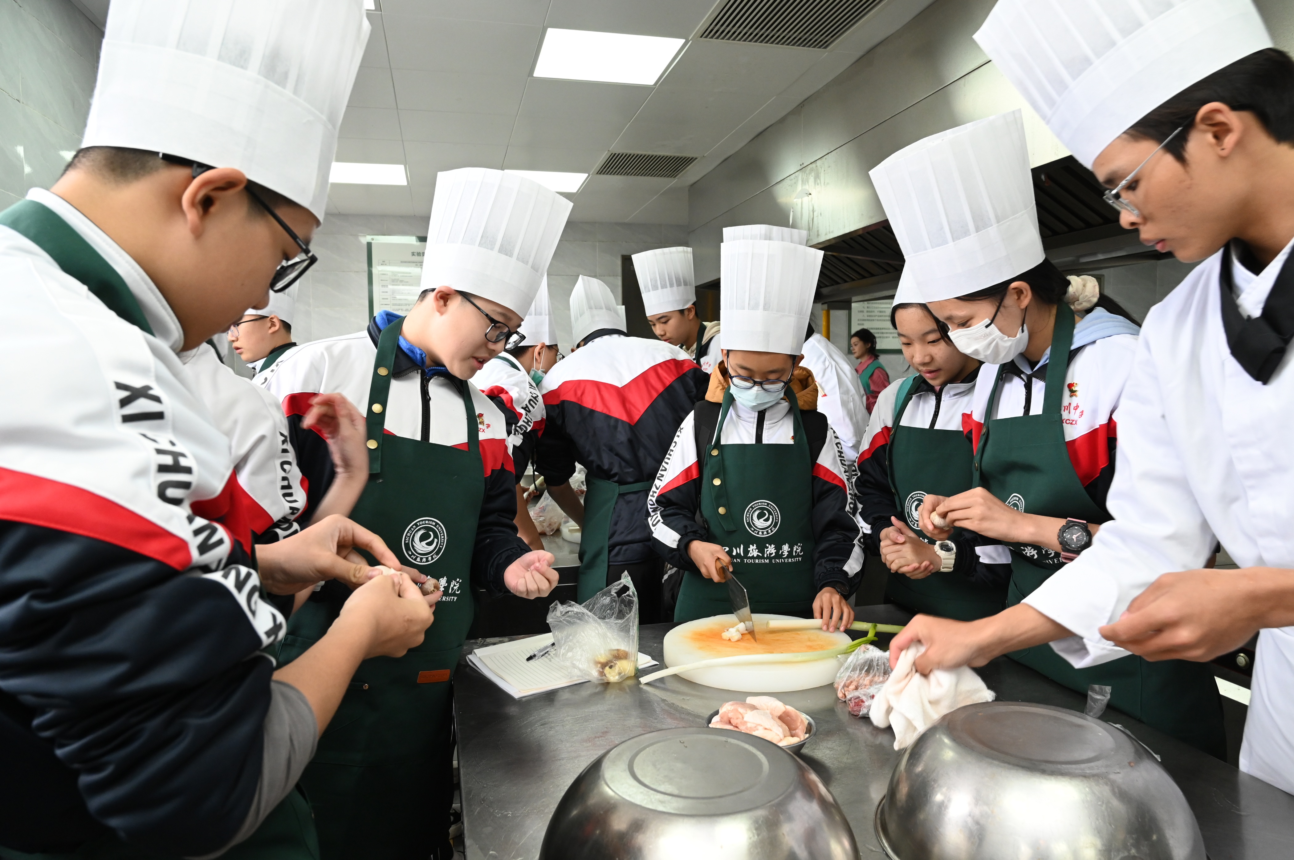 作为中国烹饪高等教育的重要学府,四川旅游学院充分发挥其在“美食与旅游”领域的学科优势,依托烹饪与食品实验管理中心、饮食文化博物馆等优质资源,精心设计了集知识性、趣味性与实践性于一体的研学课程。