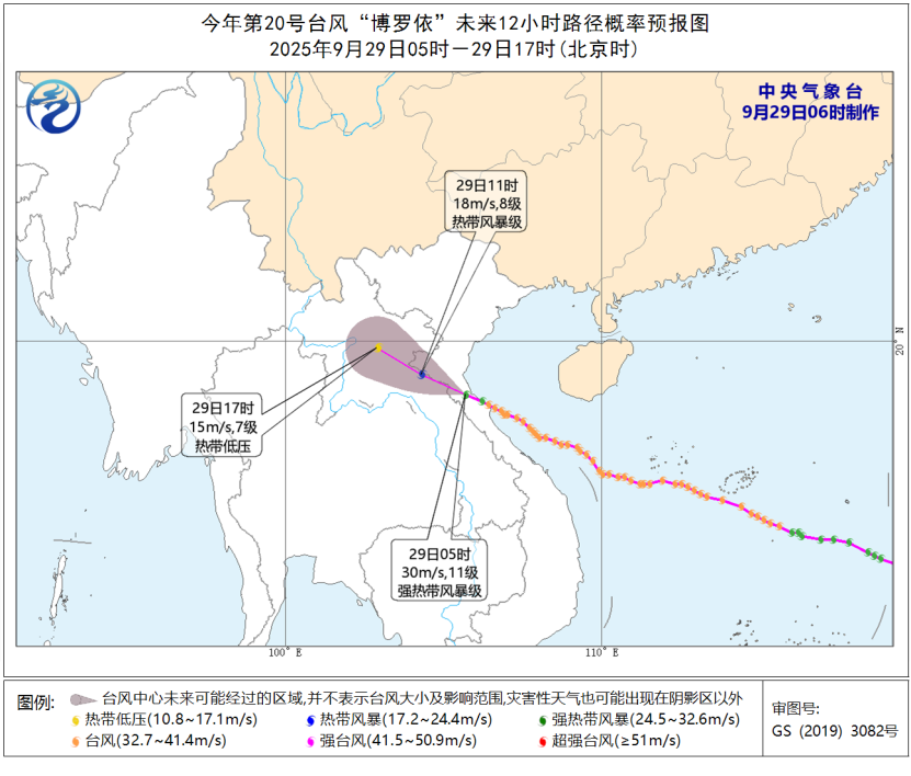 今年第20号台风“博罗依”的中心已于29日1点30分前后在越南河静省沿海登陆,登陆时中心附近最大风力有11级(30米/秒),中心最低气压为980百帕。早晨5点钟“博罗依”的中心位于越南河静省境内,就是北纬18.4度、东经105.7度,中心附近最大风力有11级(30米/秒),中心最低气压为980百帕,七级风圈半径220-250公里,十级风圈半径60-80公里。