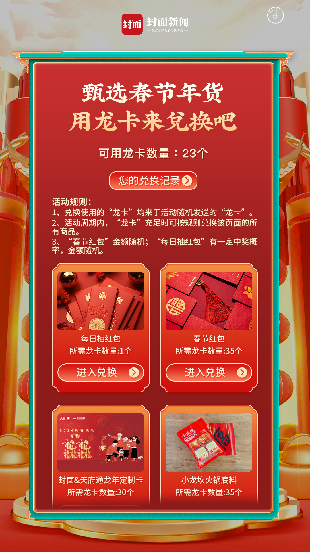 龙卡在这里,可以直接兑换春节年货哦