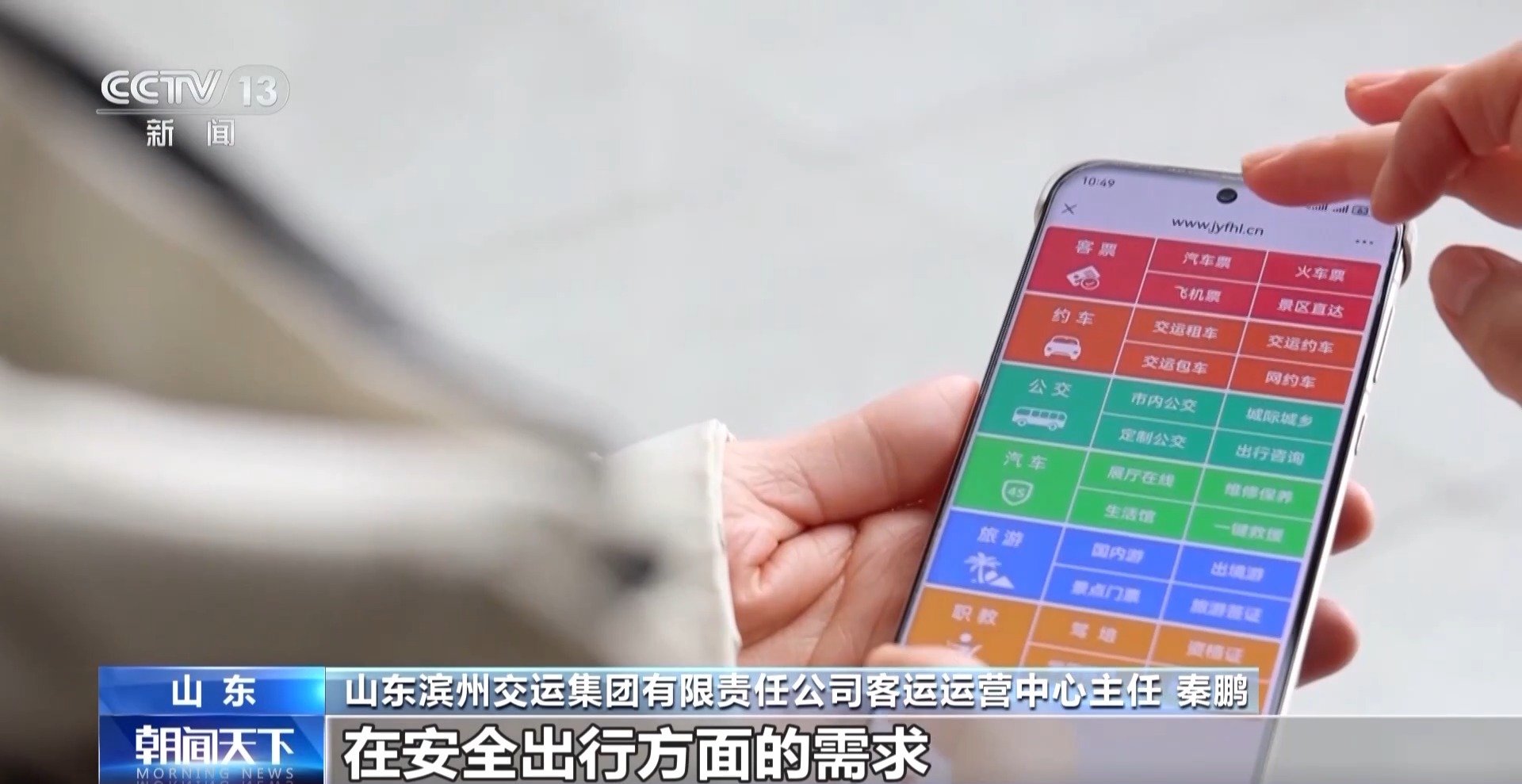 山东滨州交运集团有限责任公司客运运营中心主任 秦鹏:针对老旧小区、偏远地区的老年人以及行动不便的乘客在安全出行方面的需要,我们专门开通了上门接送服务。只需在平台购票后凭电话预约,就可以享受点对点接送服务,真正让乘客享受到安全和便捷。