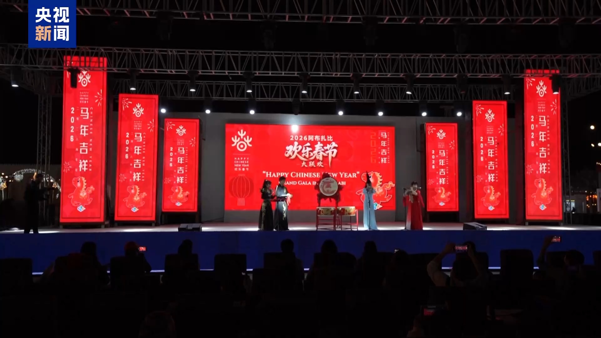 “欢乐春节”大联欢活动日前在阿联酋阿布扎比举行。来自中国的表演艺术家用古筝、二胡、琵琶等传统乐器奏响东方韵律,声乐、舞蹈、杂技、魔术等多种艺术形式交相辉映,气氛热烈。活动尾声,烟花秀点亮阿布扎比夜空。