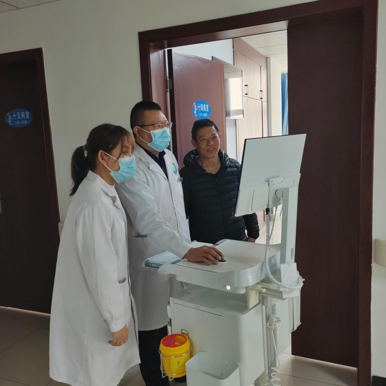 “把医用查房系统推到患者床旁,患者检验单、检查报告一点就全部出来了,检查图像还可以更直观地讲给患者和下级医生听。”心血管内一科主任、主任医师周玉龙对5G移动医用查房系统赞不绝口。