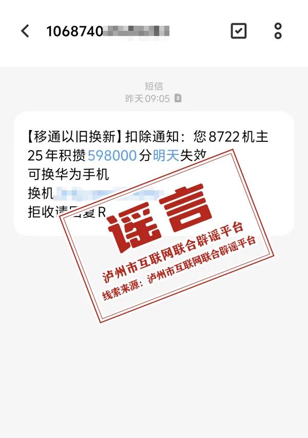 详情:近日,泸州有市民收到“通讯积分失效”“积分换机”的提醒短信。