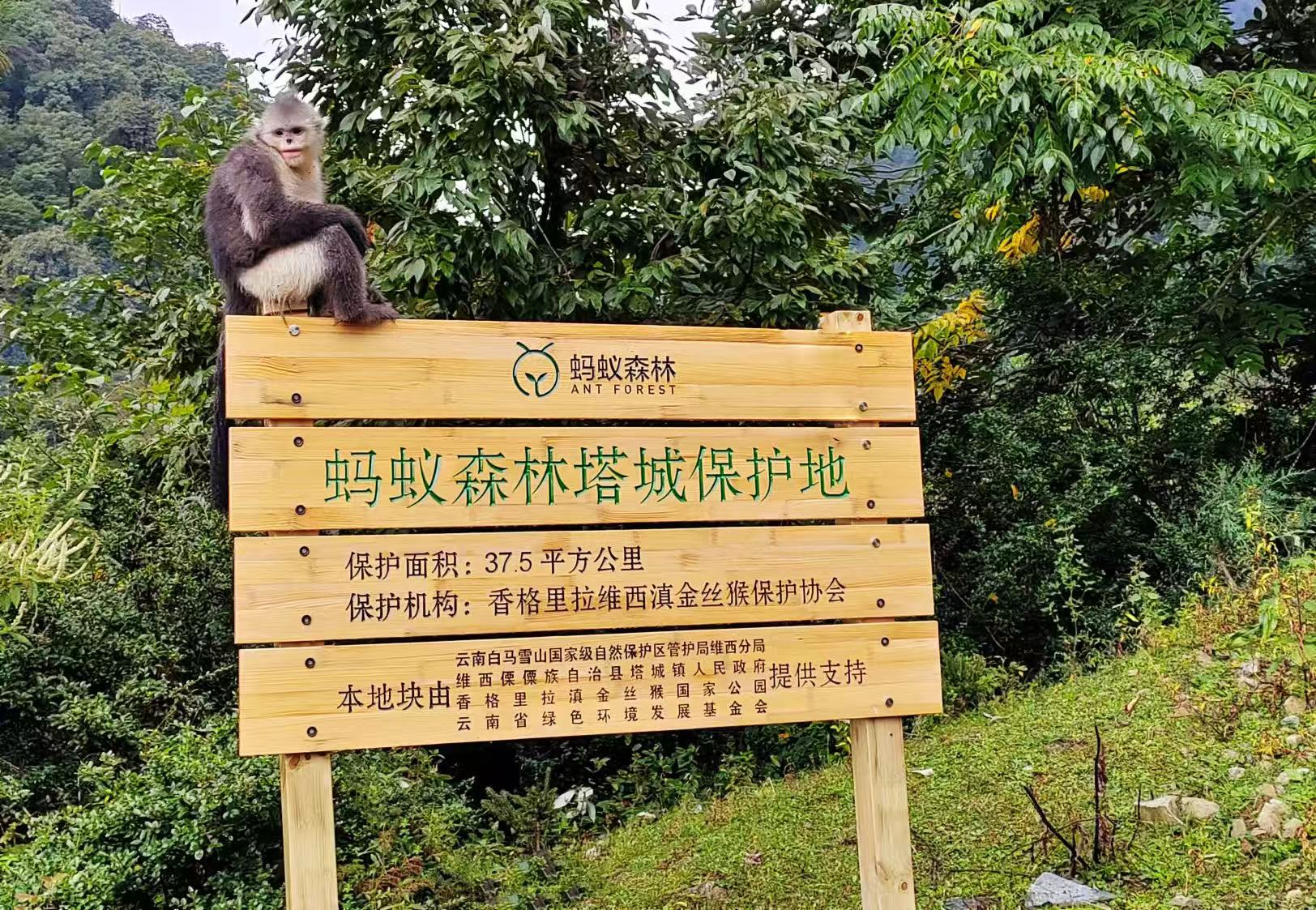 在生物多样性保护方面——蚂蚁森林在青海、云南、四川、西藏、吉林、黑龙江、广东等共计16个省份参与共建34个公益保护地,面积超过4900平方公里,守护着包括大熊猫、滇金丝猴、雪豹、东北虎等1600多种野生动植物。