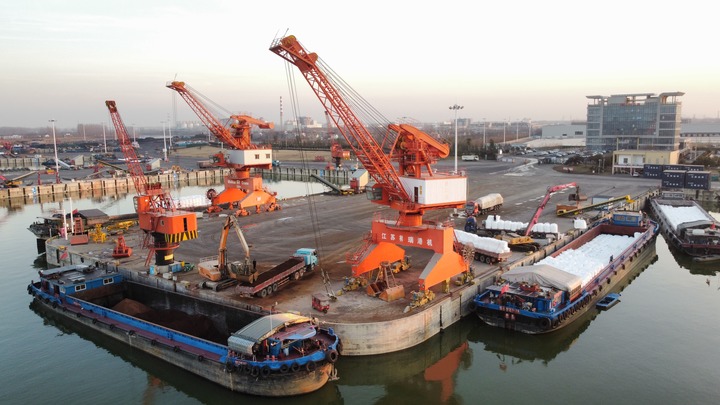 这是2025年1月7日拍摄的周口中心港范营作业区。新华社发 (刘俊涛摄)