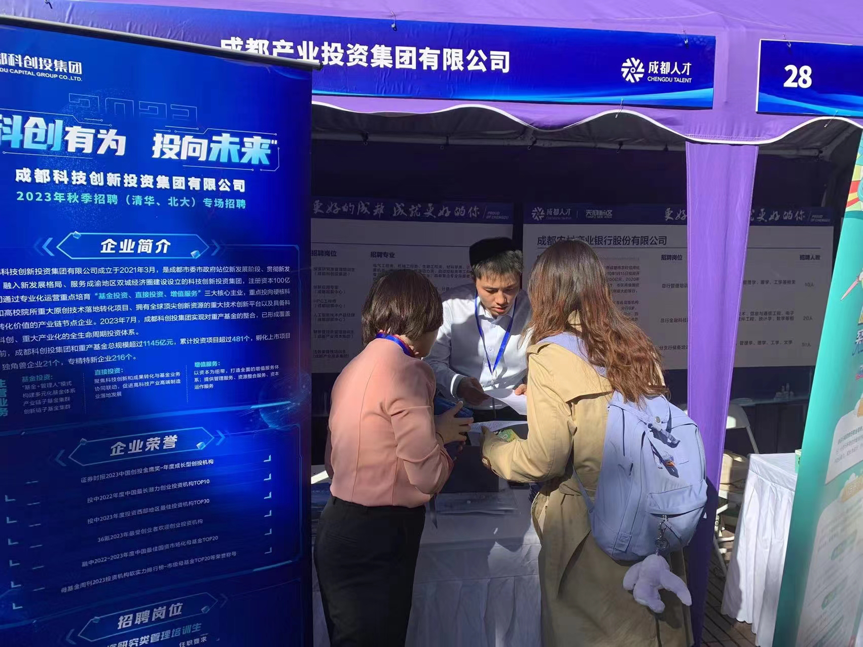 10月21日,由成都市委人才办主办、四川天府新区人才办和成都高新区党工委人才办承办的2023“蓉漂人才荟”北京专场活动在清华大学祖龙广场和北京大学邱德拔体育馆成功举办。成都产投集团旗下成都科创投作为成都市重点企业代表全程参与两场校园招聘活动。