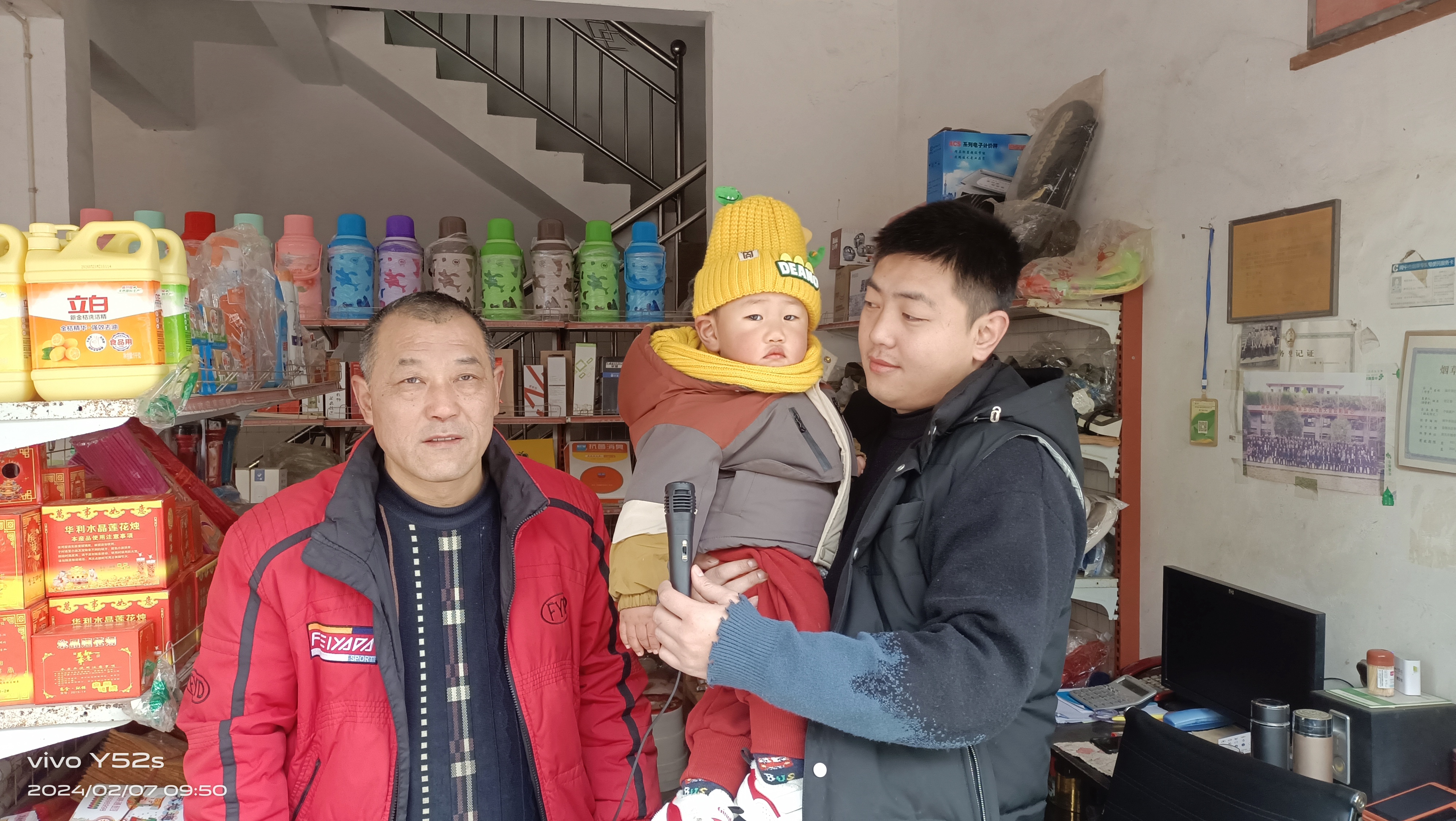 面对话筒,何正川向乡亲们“汇报”了收获,送上了祝福。当1岁3个月的儿子何浩轩用咿咿呀呀稚嫩的声音,和爷爷、爸爸共同说出“新年快乐”时,在场的乡亲们,都不约而同暖心一笑。