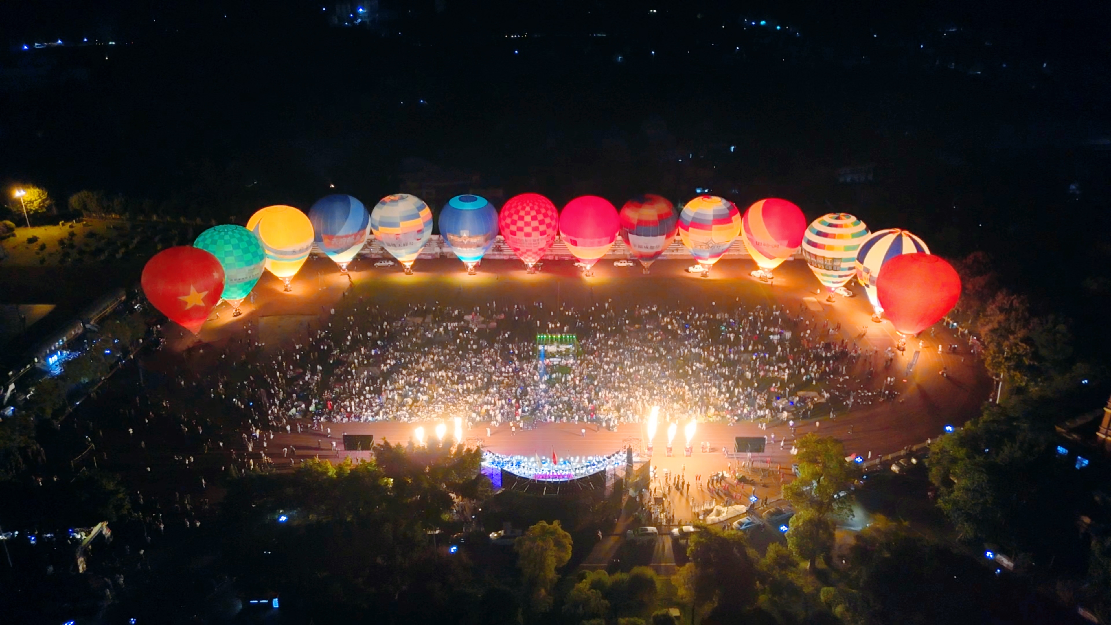 夜晚热气球点燃校园音乐节