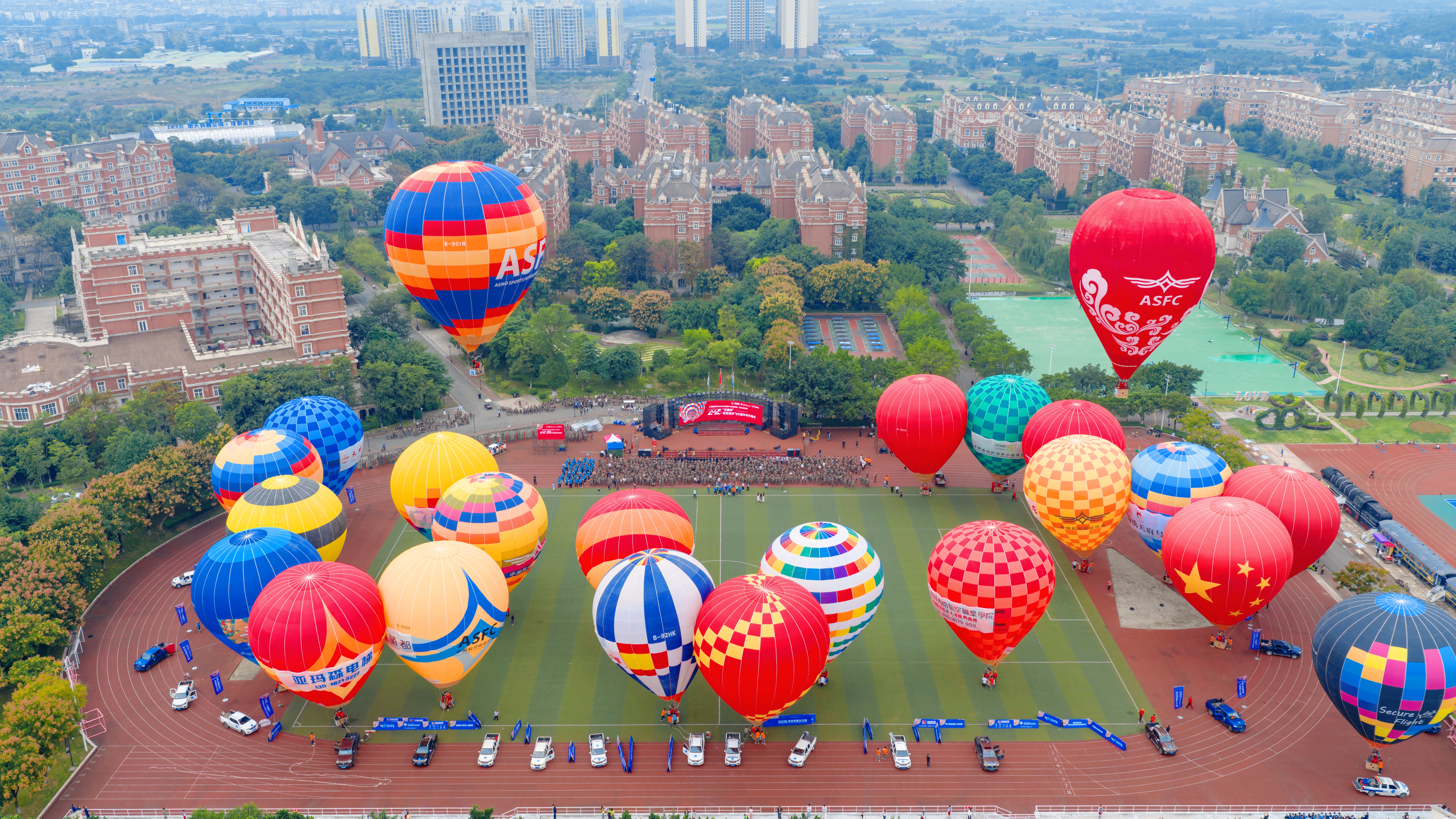 10月16日,四川西南航空职业学院的上空升起30只五彩斑斓的热气球——红、黄、蓝、绿交织升腾,宛如一场“土耳其浪漫”。“2025低空经济飞行嘉年华”的活动在校园内启幕,点燃师生热情。