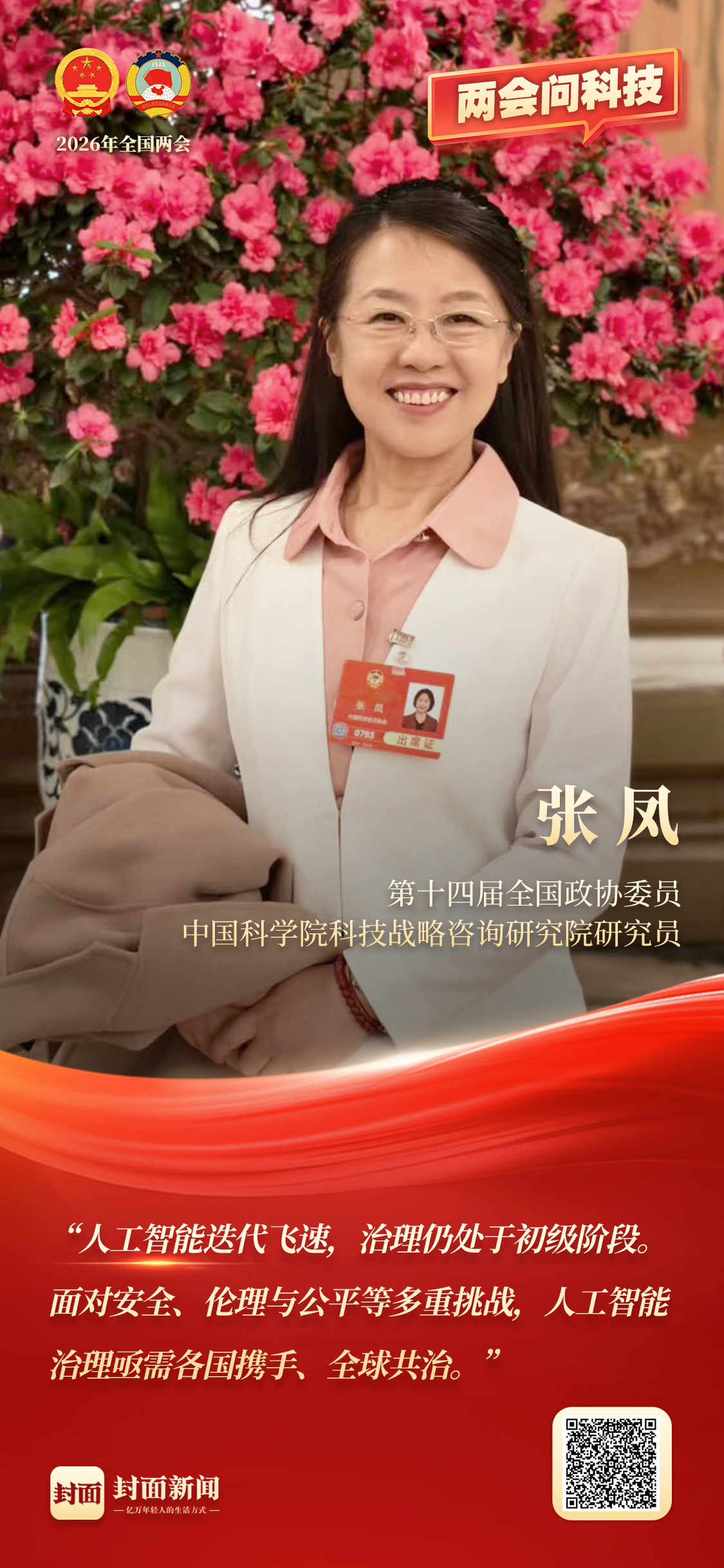 张凤 全国政协委员、中国科学院科技战略咨询研究院研究员。今年全国两会,她关注的重点之一是“人工智能治理”。