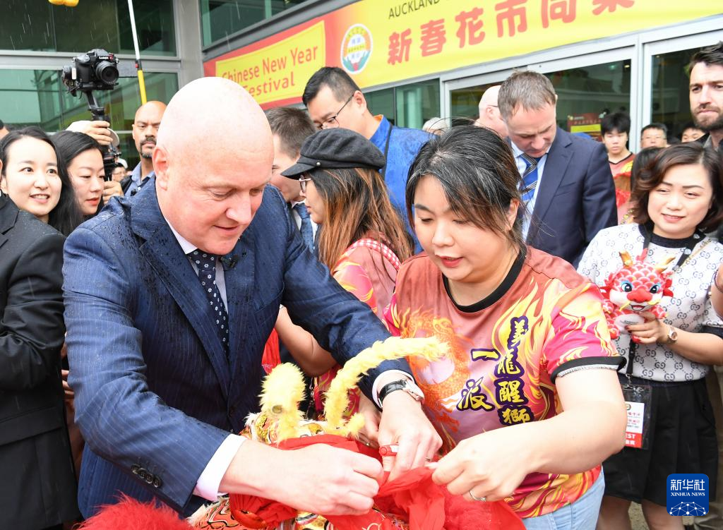 新西兰总理拉克森等多位政要和中国驻新西兰大使王小龙3日冒雨参加在奥克兰举行的“新春花市同乐日”活动,与数千名当地华人共迎龙年新春。来自中国湖北的专业演出团体为观众表演了民歌、京剧和武术。