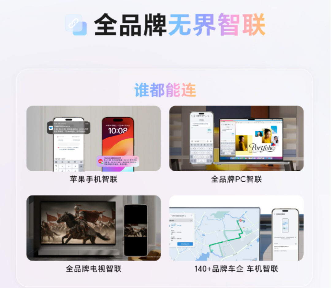 生态互联层面,基于 HONOR AI Connect 技术底座、MagicRing信任环技术、开放式通信协议与分布式架构的相互协同,MagicOS 10实现了跨设备(手机、平板、电脑、IoT)、跨系统(Android、Windows、鸿蒙、 iOS)的无界智联能力。例如,荣耀手机可实现与iPhone、Mac电脑及Apple Watch的深度联动,以及全品牌PC设备间的屏幕共享、文件拖拽传输等功能,这些打破生态壁垒的无界智联能力,也正是荣耀最新提出的“1×3×N”生态战略中“1”的核心体现。