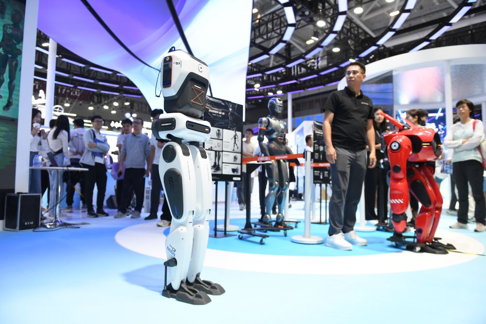 2024年11月14日,在第二十六届中国国际高新技术成果交易会上,深圳市众擎机器人科技有限公司展示机器人的行走能力。 新华社记者毛思倩摄
