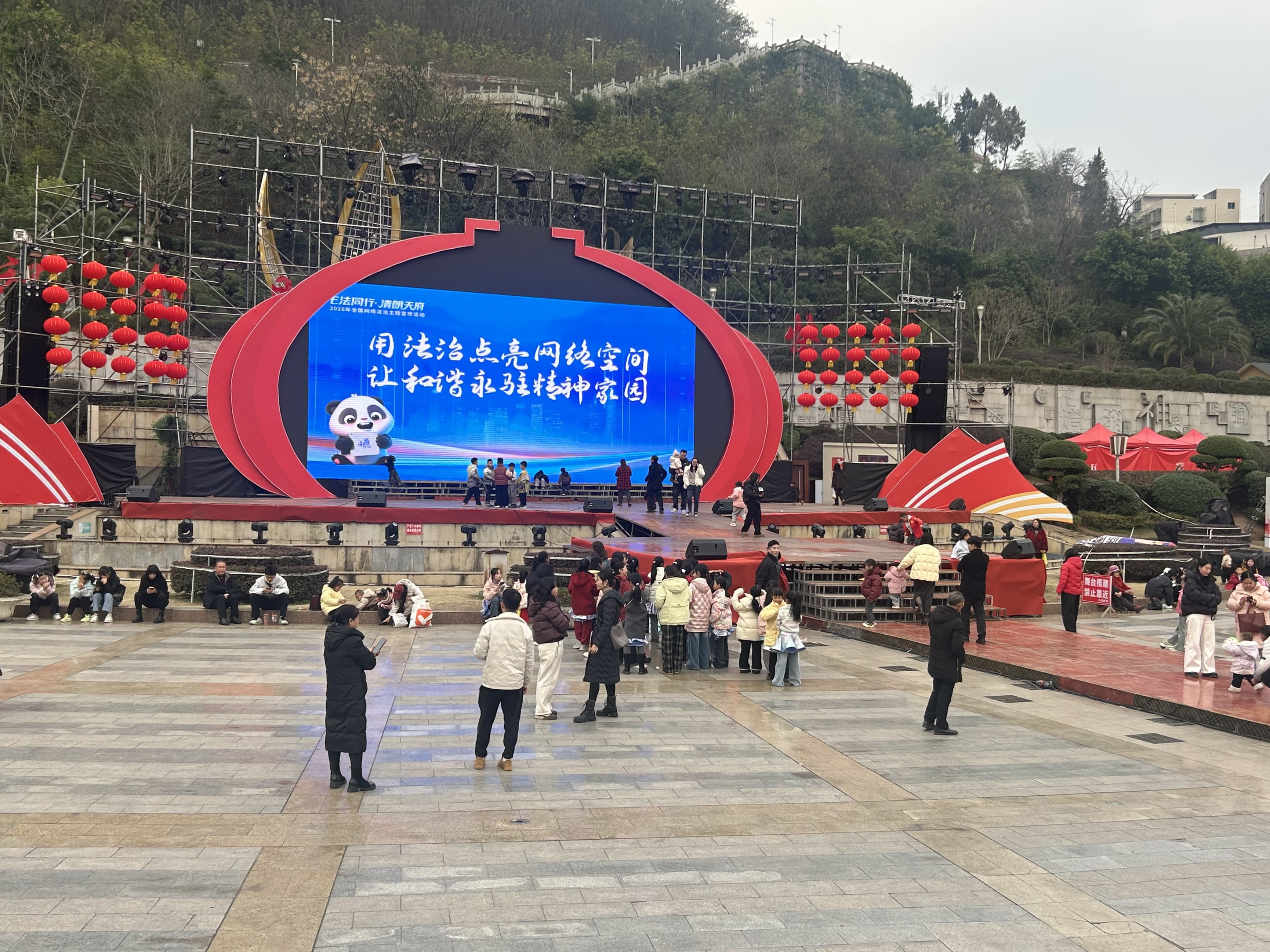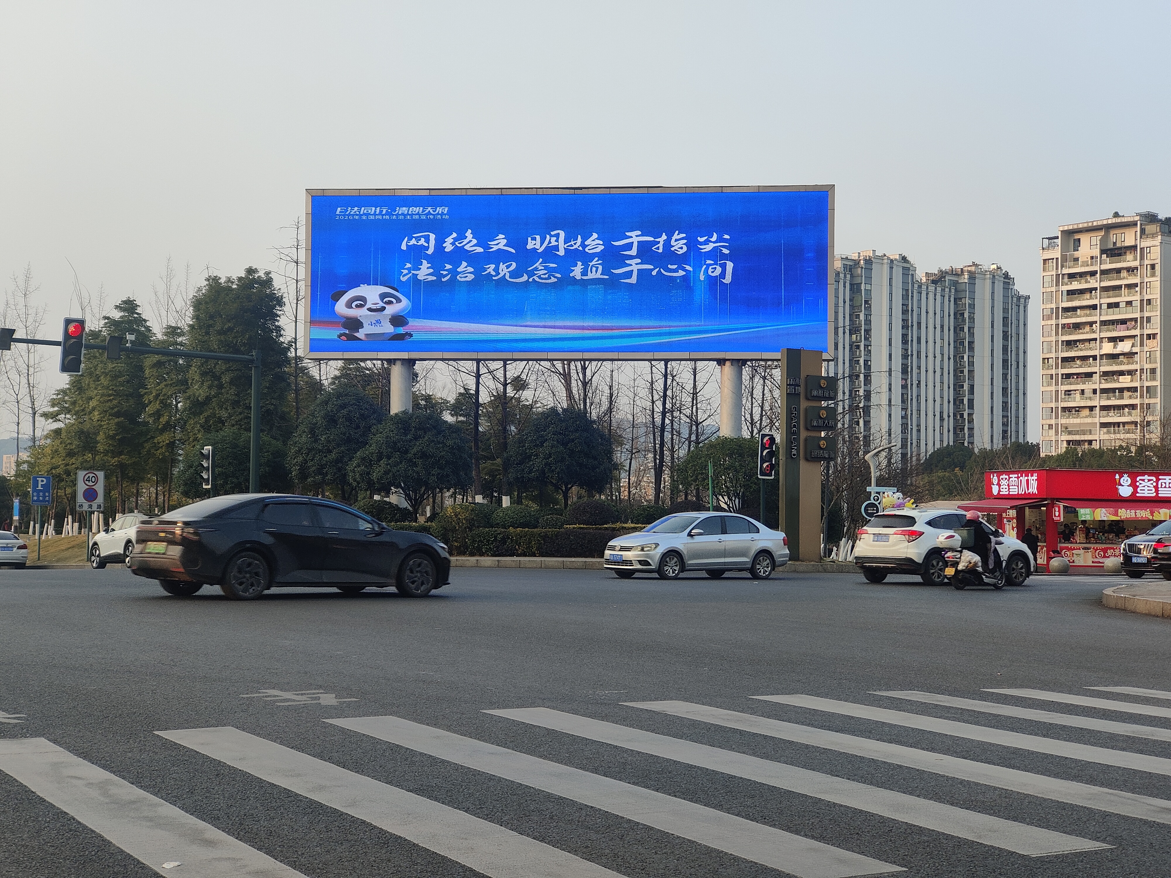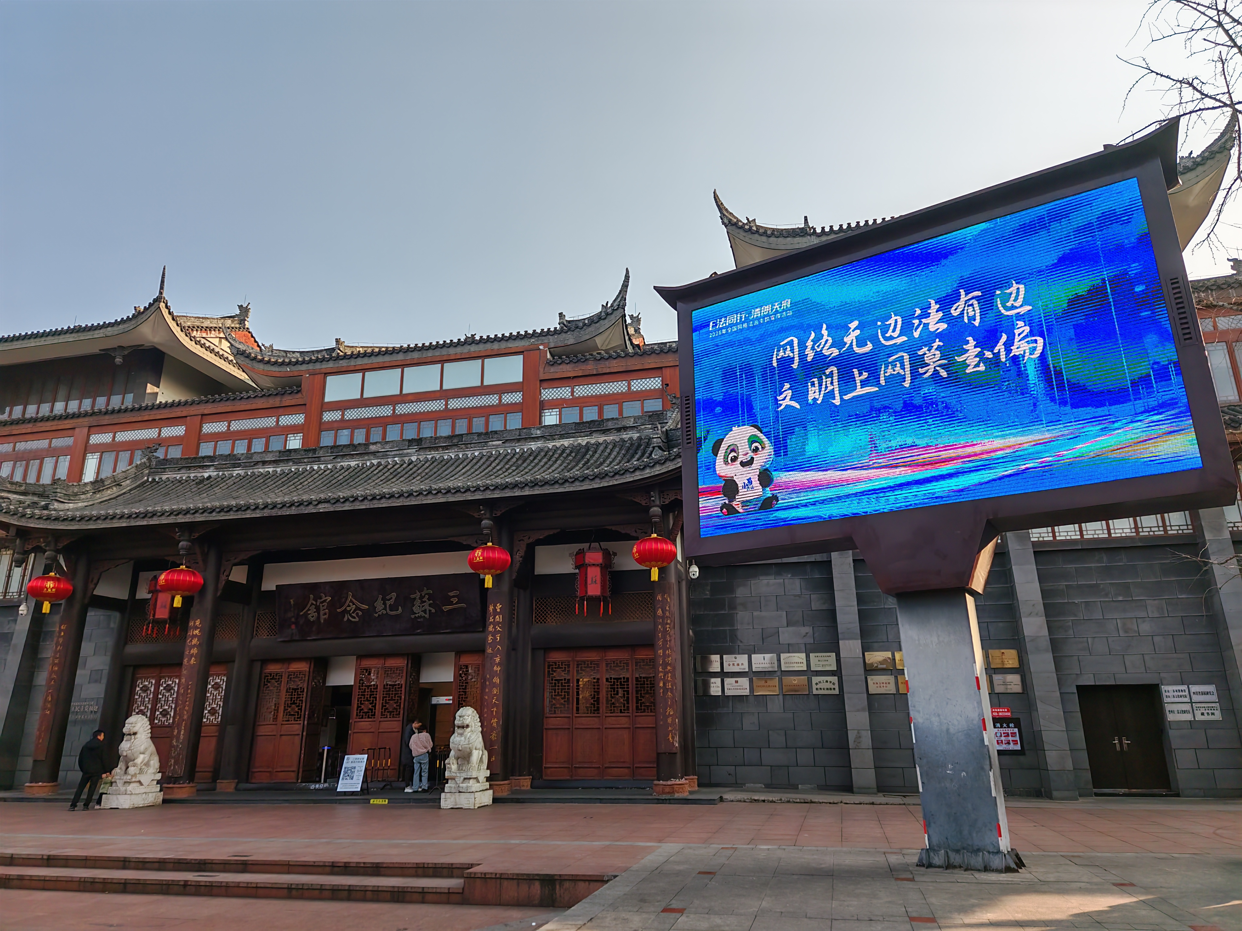 “网络无边法有边,文明上网莫走偏”“人人都是网络形象,个个都是普法力量”“网络文明始于指尖,法治观念植于心间”……在眉山三苏祠、泸州高铁站、自贡彩灯公园、绵阳安州体育馆以及多个城市主要商圈的户外大屏,“小蜀”带着朗朗上口的网络普法金句现身。一句句贴近生活、通俗易懂的普法标语,不仅为节日里的城市增添了一道亮丽风景线,更让过往市民和游客在出行、购物、游玩之余,驻足观看,在潜移默化中学习网络法律法规知识。