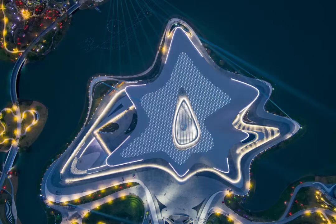 2023世界科幻大会主场馆——成都科幻馆,三面环湖、一面朝山,它由无数云雾状的星体结合,如造梦者的想象般无边无界。