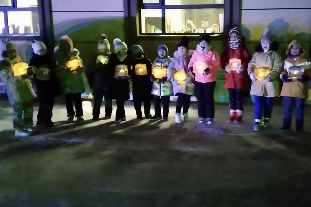在伊春市生态经济开发区永达工艺研学体验基地,气温低至零下20摄氏度。十几名孩子齐聚一堂,把小小蜡烛缓缓放进已经冻好的冰模具。不一会儿,冰灯一闪一闪,孩子们激动地抱到了雪地。